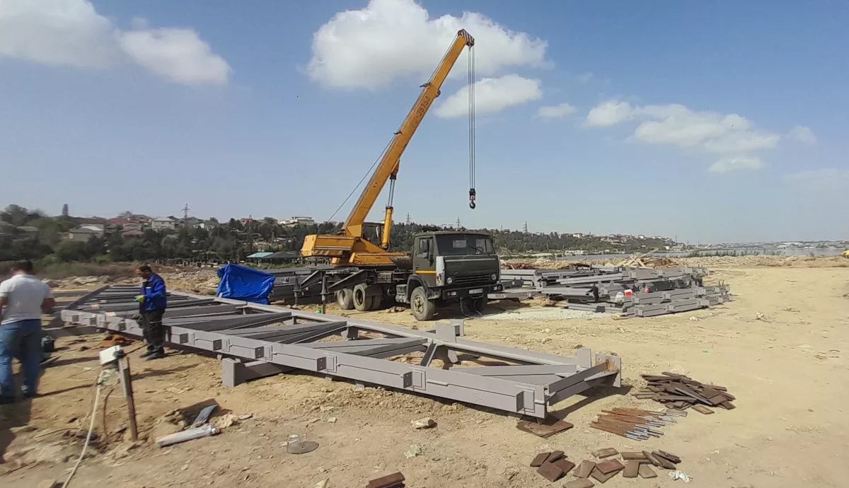 Это огромное, первое на территории Сураханского района подобного рода сооружение, которое будет очищать загрязненную воду и частично возвращать её обратно в озеро, а в основном переправлять по коллектору в поселок Говсан, на главную аэрационную станцию.