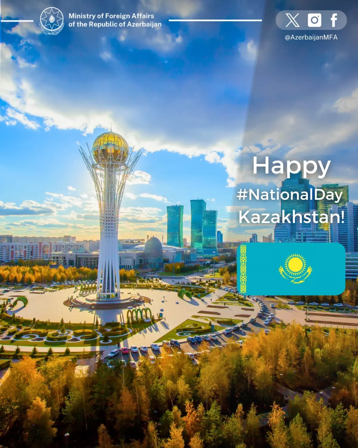 Министерство иностранных дел Азербайджана поздравило Казахстан с национальным праздником.