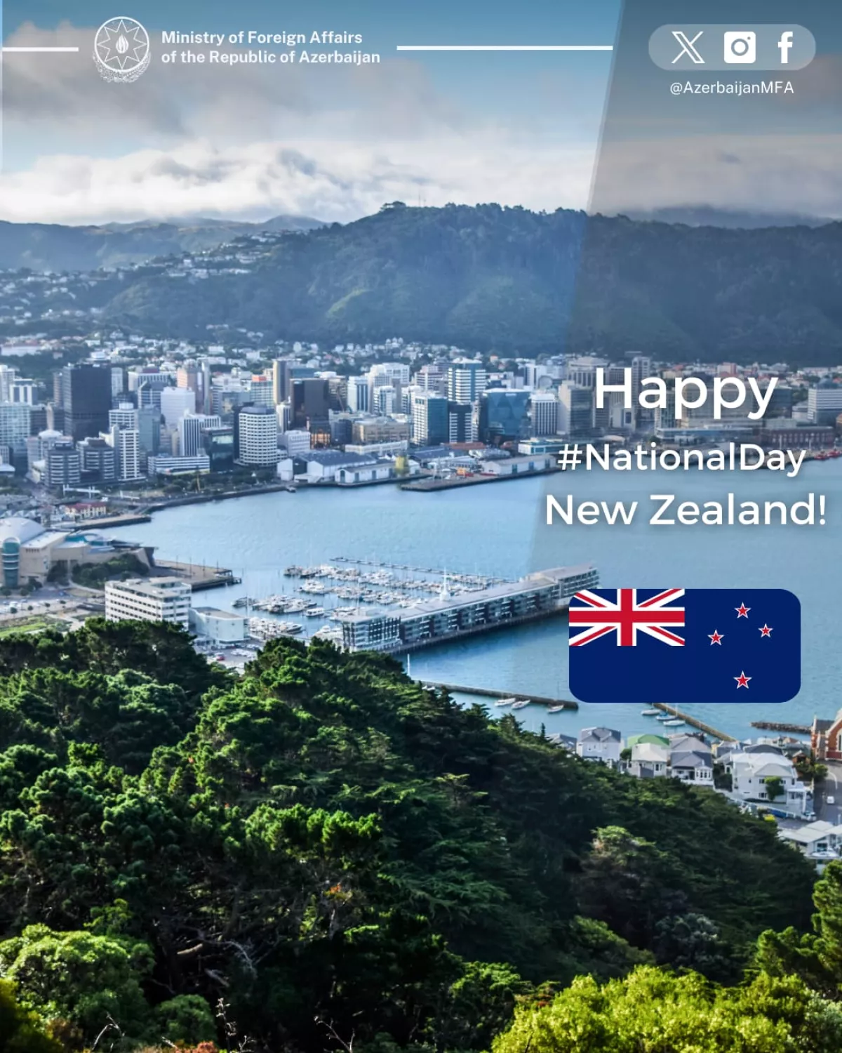 Министерство иностранных дел Азербайджана поздравило Новую Зеландию с национальным праздником.