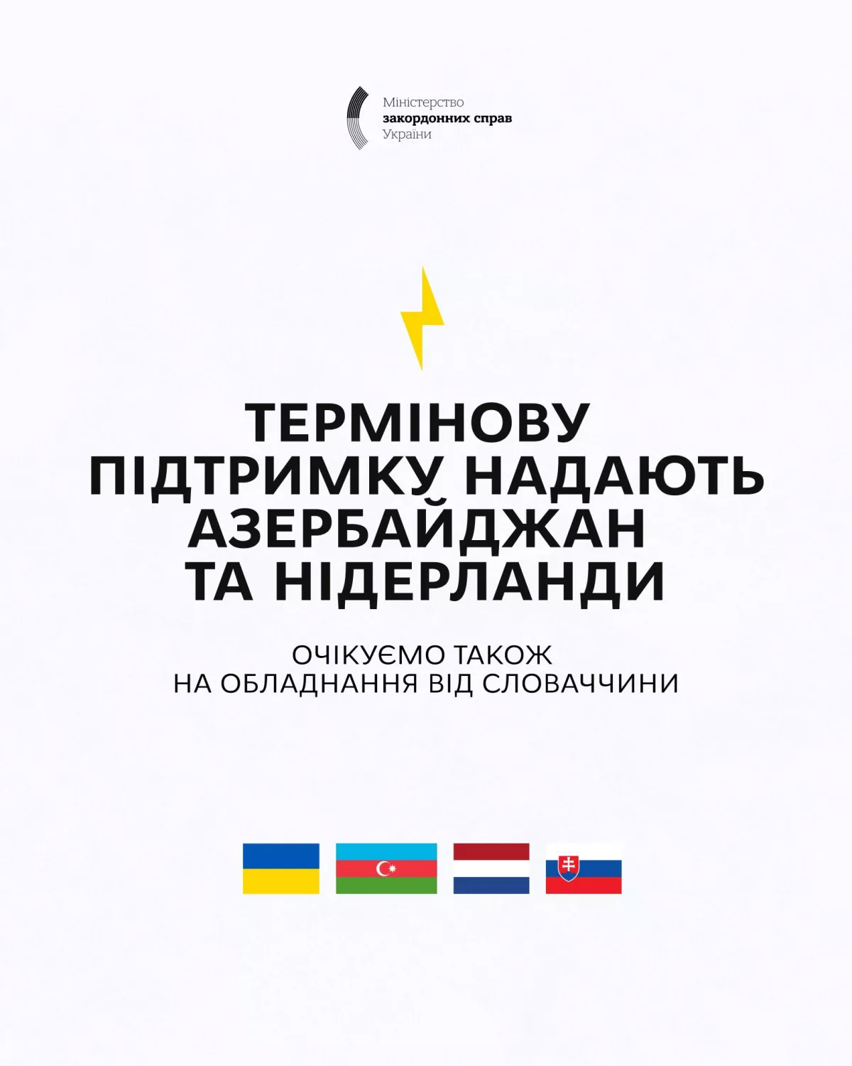 «Глава МИД Украины Андрей Сибига сообщил о дополнительной энергетической помощи, конкретном оборудовании и взносах от ряда стран для Украины, которая поможет укрепить устойчивость на фоне постоянных российских обстрелов.