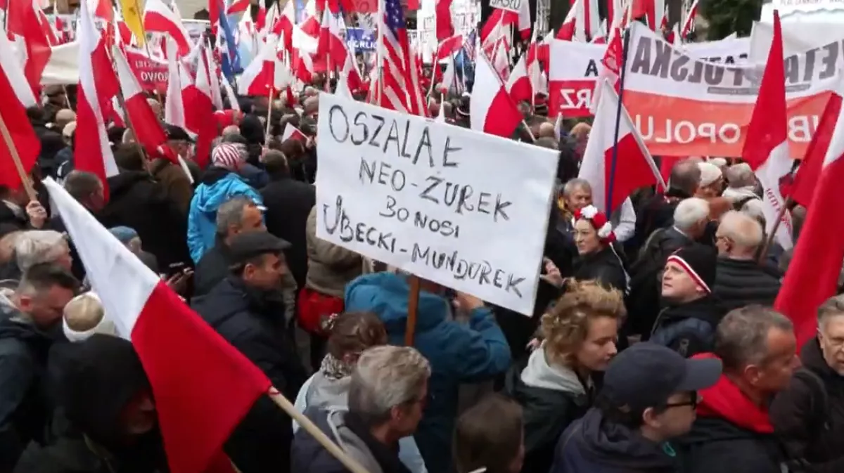 В центре Варшавы, на Замковой площади, собрались тысячи сторонников оппозиционной партии «Право и справедливость» (PiS).