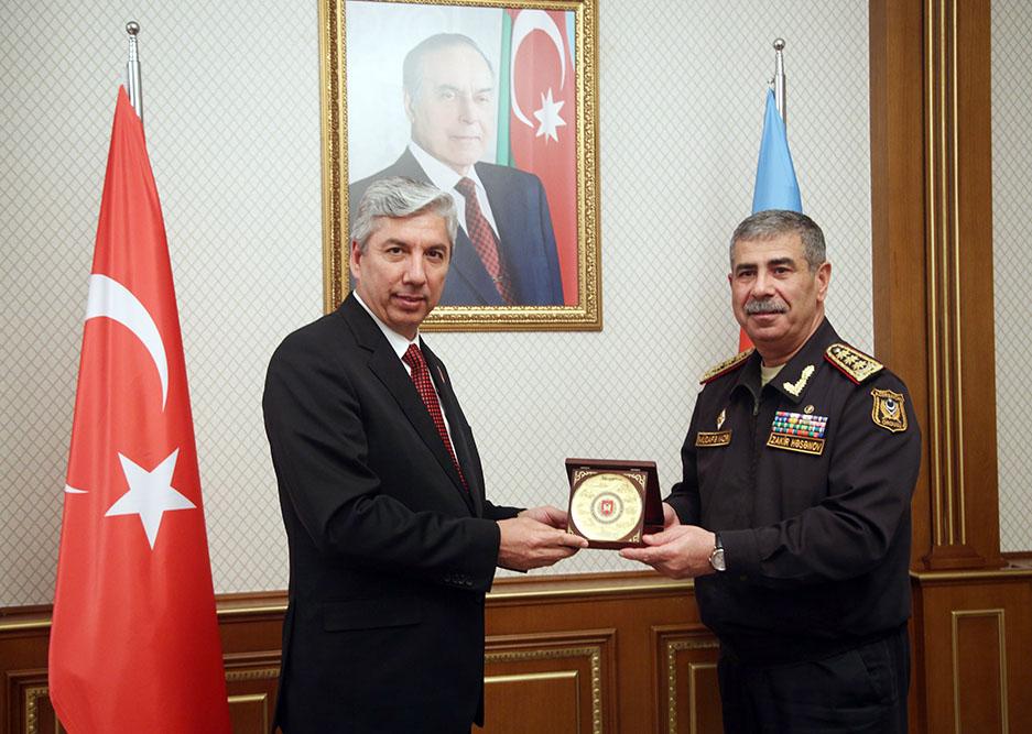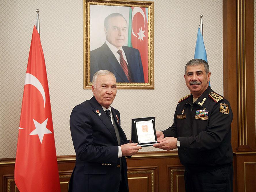 Находящиеся с визитом в Азербайджане главы турецких неправительственных организаций (НПО) военной направленности - Эрдоган Каракуш, Хамза Дюрген, Мустафа Ишик и Беязит Юмук 11 ноября встретились с министром обороны генерал-полковником Закиром Гасановым.