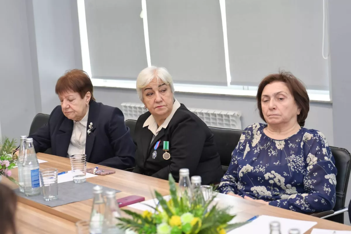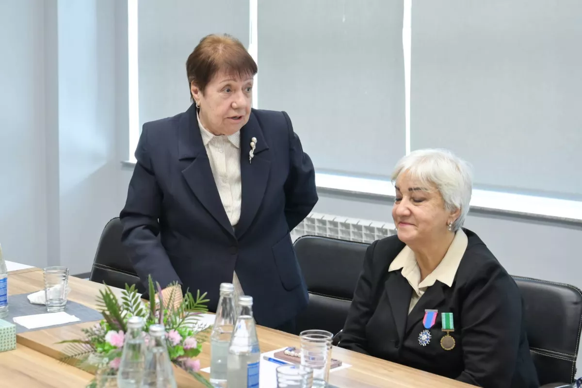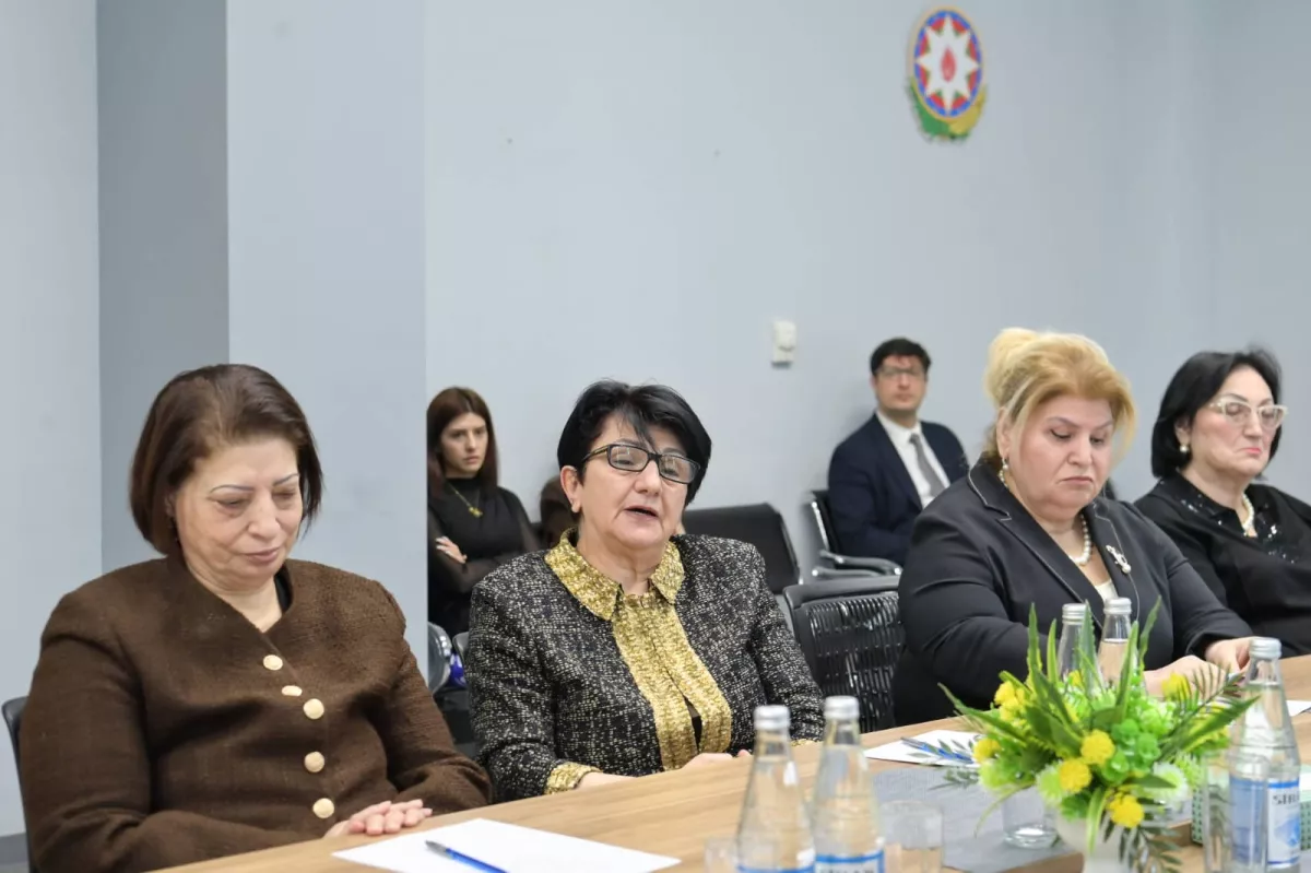 Министр науки и образования Эмин Амруллаев провел встречу с группой вышедших на пенсию ведущих женщин-педагогов по случаю 8 марта — Международного женского дня.