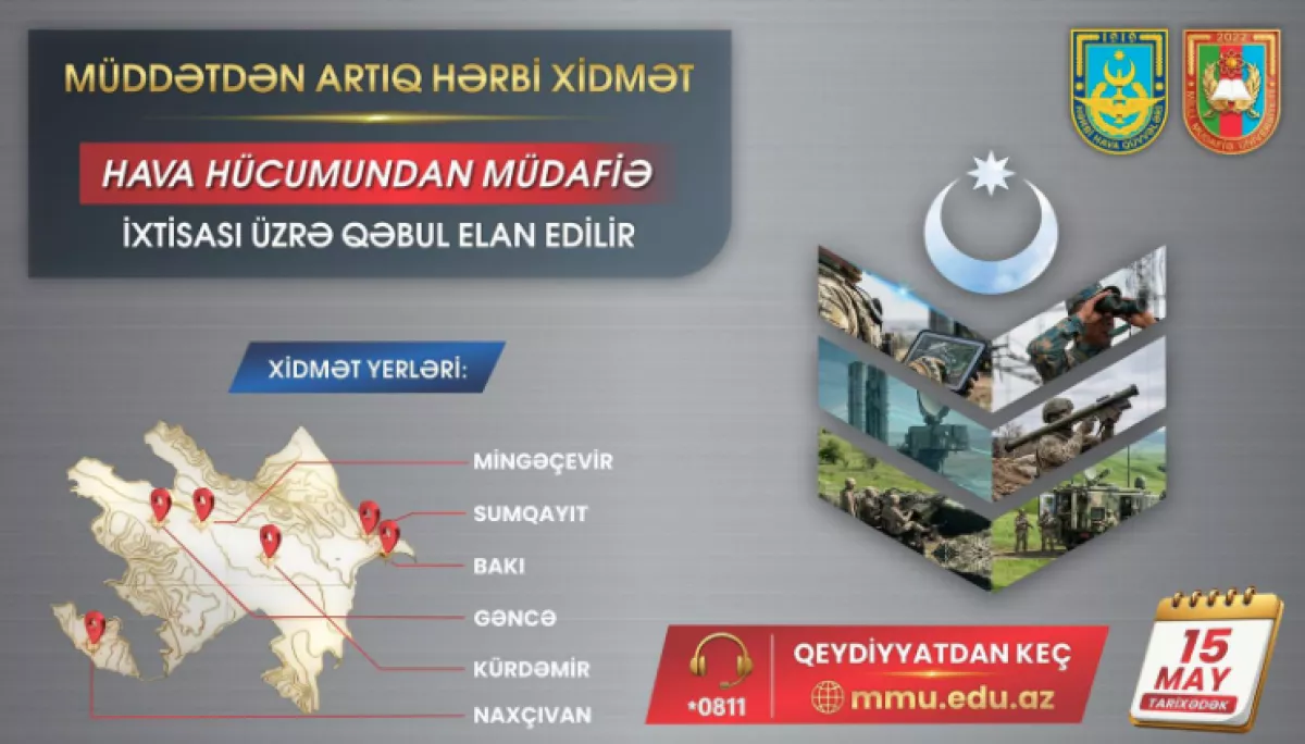 Как сообщили Caliber.Az в ведомстве, документы от кандидатов принимаются до 15 мая. Документы можно подать в электронном порядке, а также предоставить их в Военный институт имени Гейдара Алиева Национального университета обороны и в Учебно-образовательный центр Отдельной общевойсковой армии.