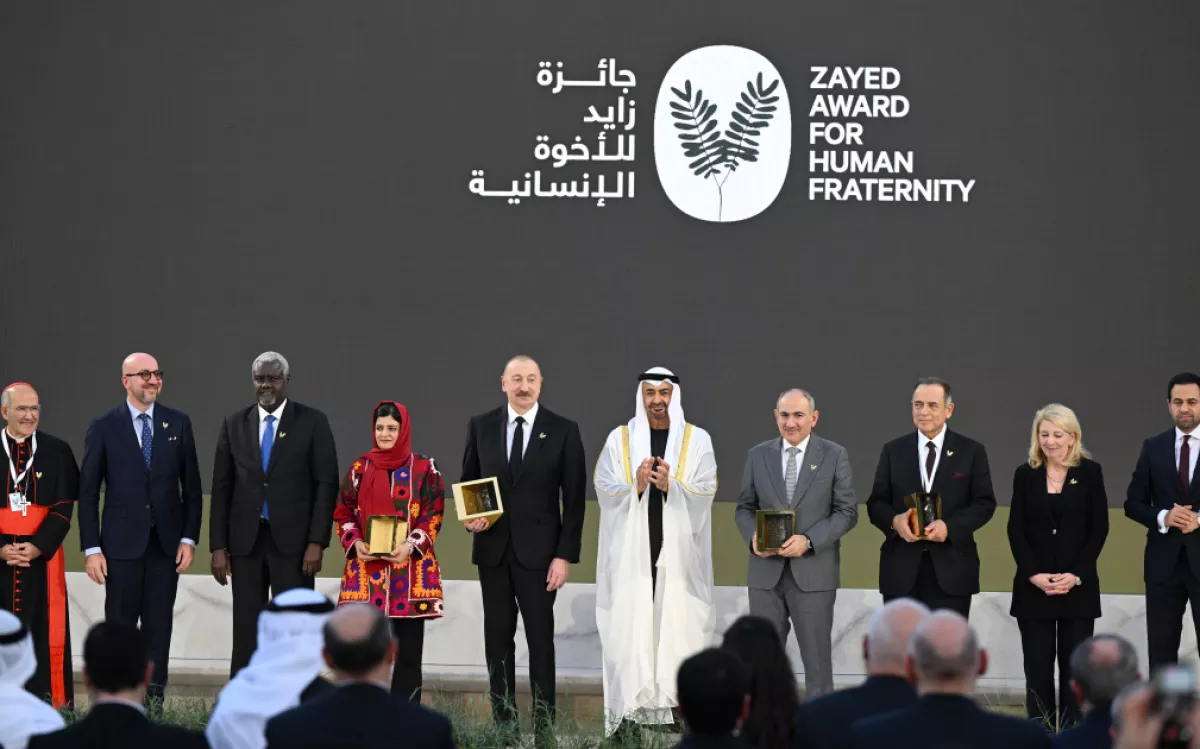 В Абу-Даби проходит церемония вручения «Премии Зайеда за человеческое братство». Среди лауреатов премии — президент Азербайджана Ильхам Алиев, премьер-министр Армении Никол Пашинян, афганская правозащитница и активистка в сфере образования девочек Зарга Яфтали, а также палестинская благотворительная организация Taawon.