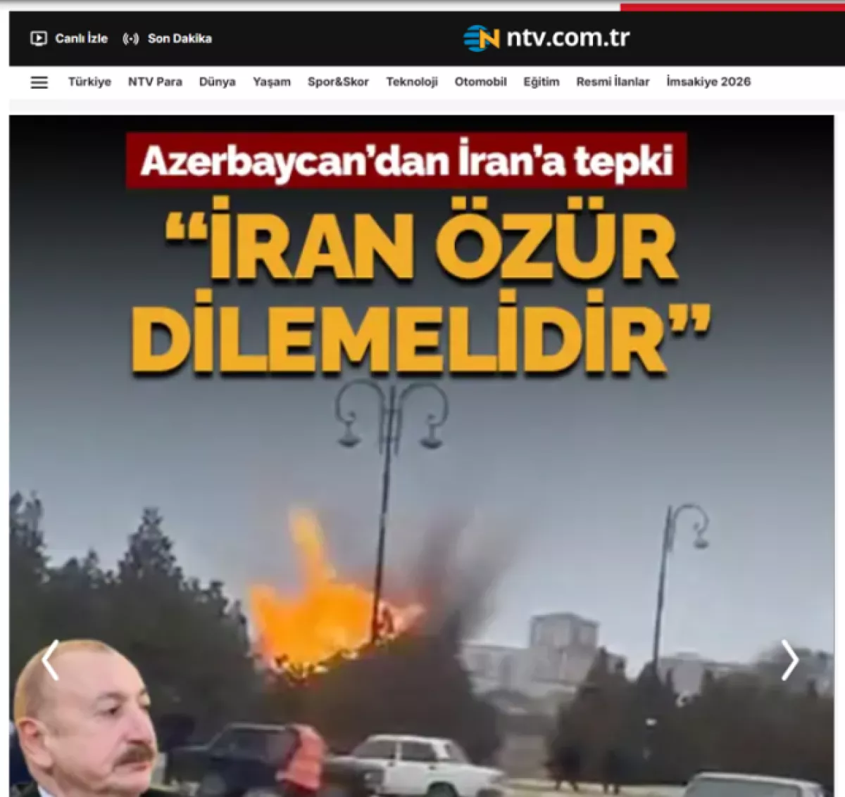 Некоторые международные медиа также цитировали Президента Азербайджана. Как подчеркивается в публикациях, Президент Ильхам Алиев отметил, что Иран должен официально принести извинения за эту атаку, а ответственные лица должны быть привлечены к ответственности.