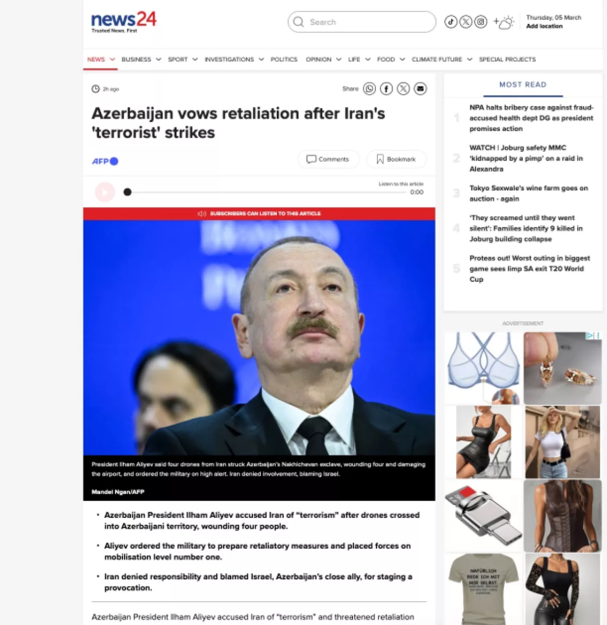 Новостной портал Gаndul написал, что Президент Ильхам Алиев обвинил Иран в совершении террористического акта против Азербайджанского государства.