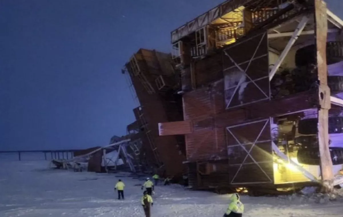 Недалеко от нефтяного месторождения Альпайн на севере Аляски упала крупнейшая мобильная буровая установка, инцидент сняли на видео.