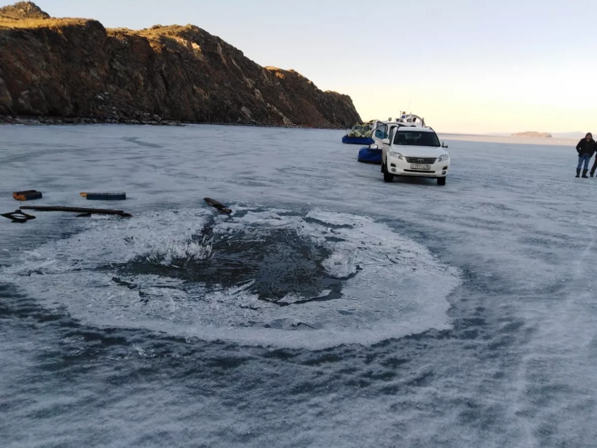 На Байкале спасли женщину с ребёнком из провалившегося под лёд внедорожника ВИДЕО