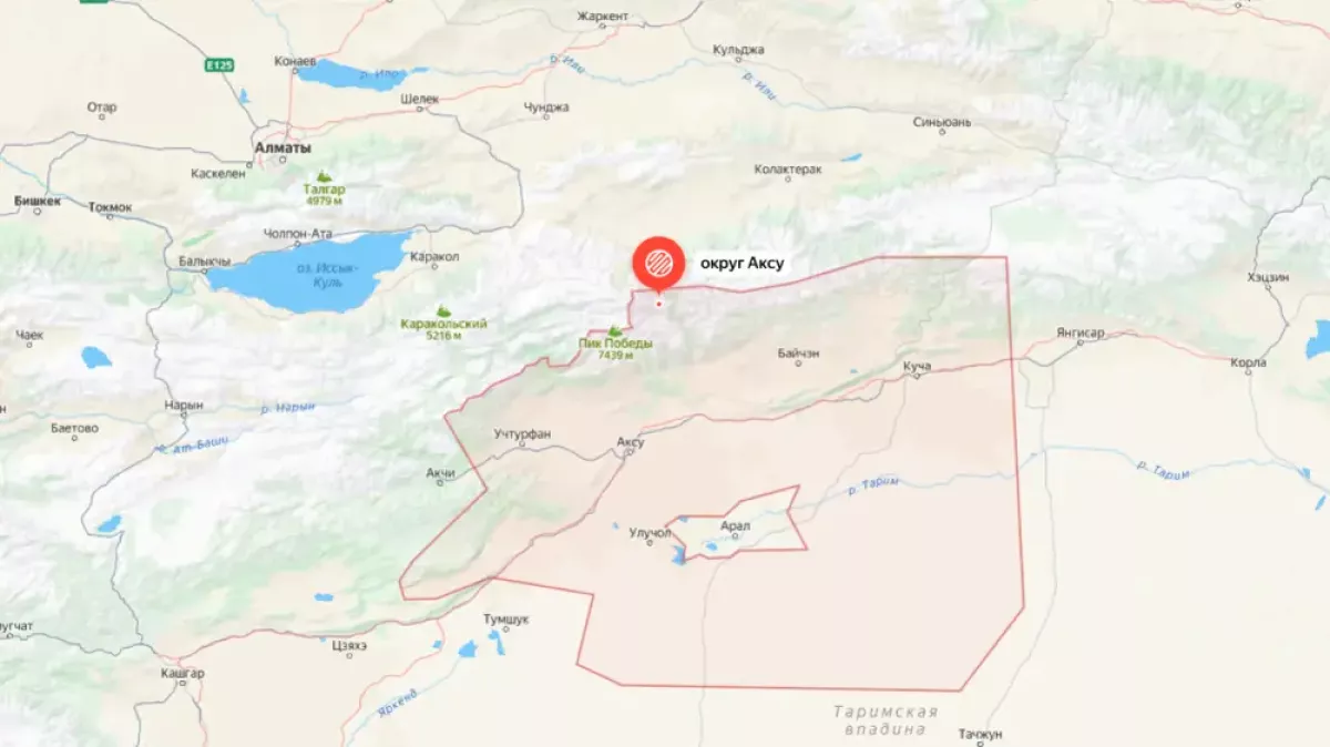 В МЧС сообщили, что эпицентр землетрясения магнитудой 5,3 был расположен в 311 километрах на юго-восток от Алматы на границе Кыргызстана и Китая.