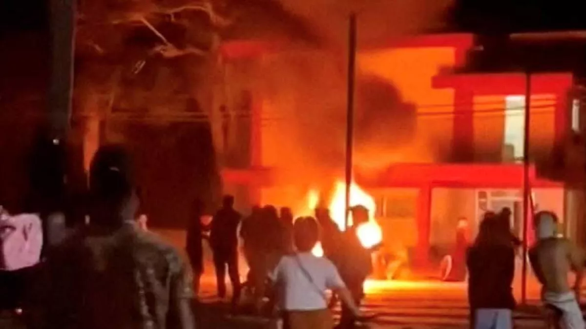Участники забросали камнями вход в здание, вынесли мебель из приемной и подожгли её на улице. Нападению подверглись также государственная аптека и продовольственный магазин.