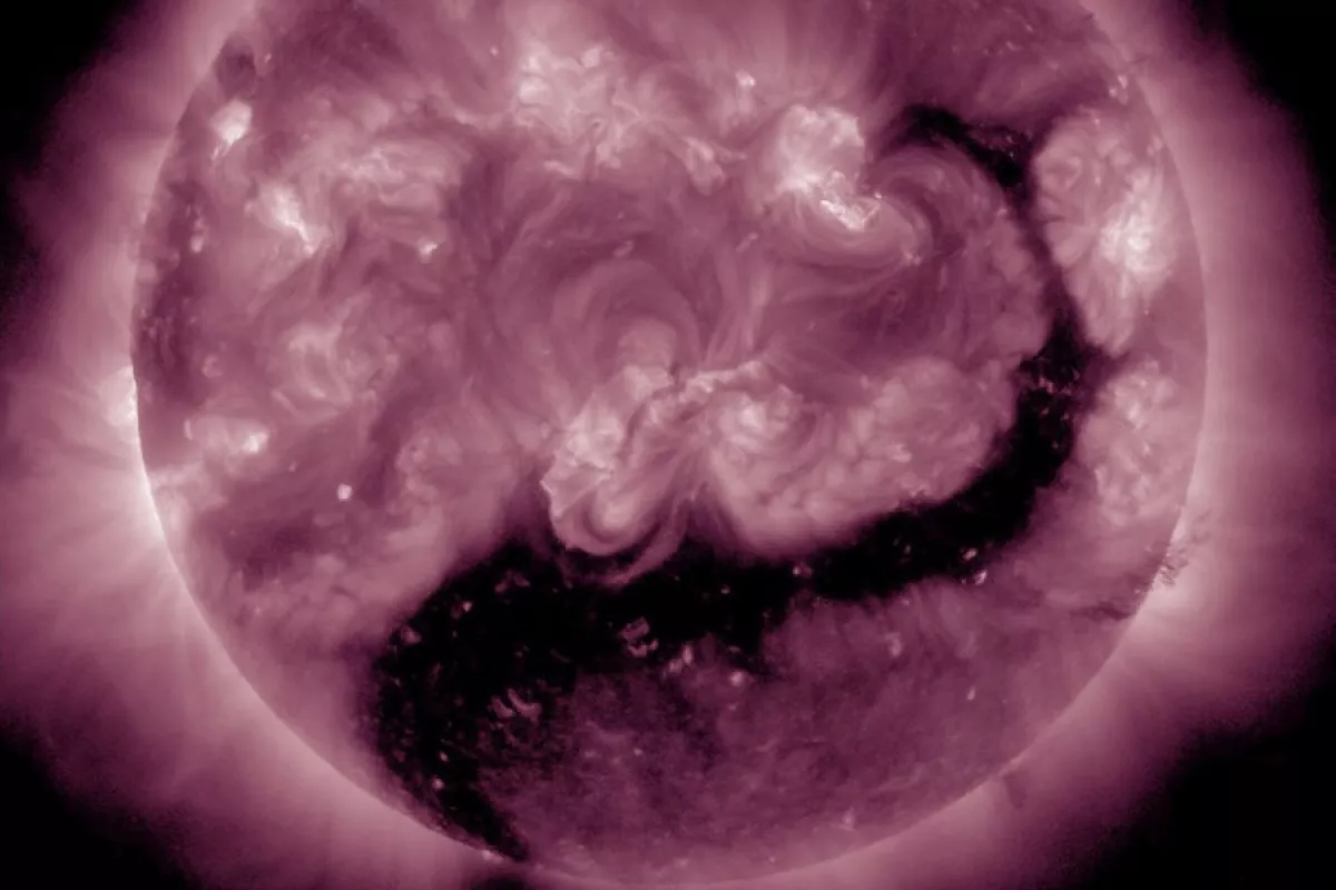 Лаборатория солнечной астрономии Института космических исследований РАН сообщила о появлении на Солнце корональной дыры, очертания которой напоминают фигуру дракона.