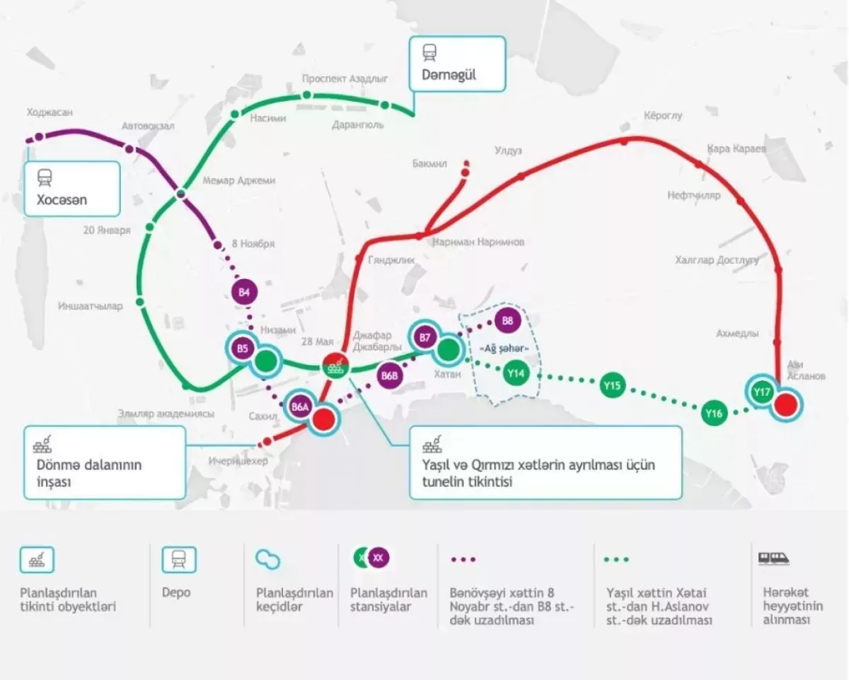 Как сообщает Caliber.Az, данная работа проводится в рамках проекта по разделению «Красной» и «Зелёной» линий на «28 Мая».