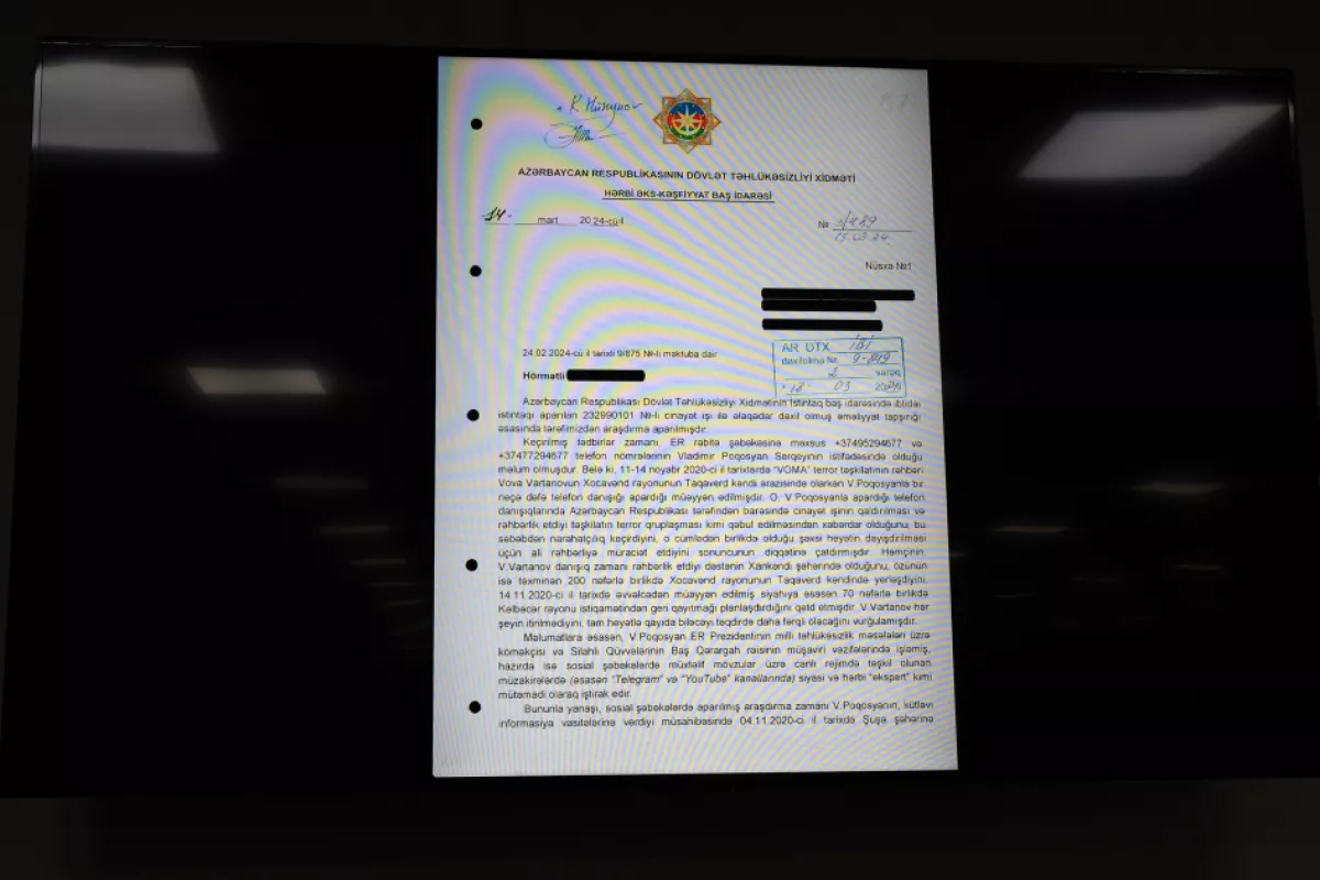 В ходе проведенных оперативных мероприятий было установлено, что Р. Варданян, с которым В. Вартанов поддерживал регулярную связь, обсуждал с ним в рамках террористической организации VoMa вопросы подготовки боевиков и инструкторов, организации учебно-тренировочных занятий, а также совершения террористических актов против Вооруженных сил Азербайджанской Республики и участия в боевых действиях остатков армянской армии и незаконных армянских вооруженных формирований. Также было установлено, что финансирование данной террористической организации и ее членов Р. Варданян взял на себя.