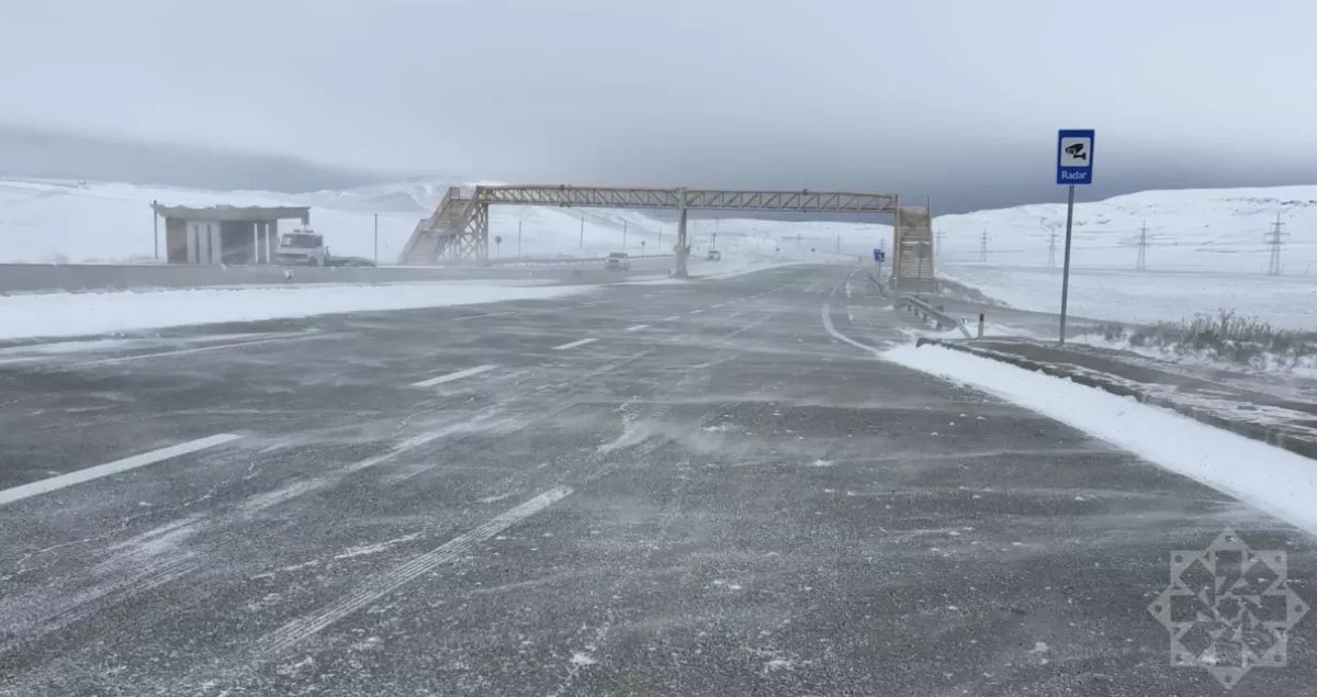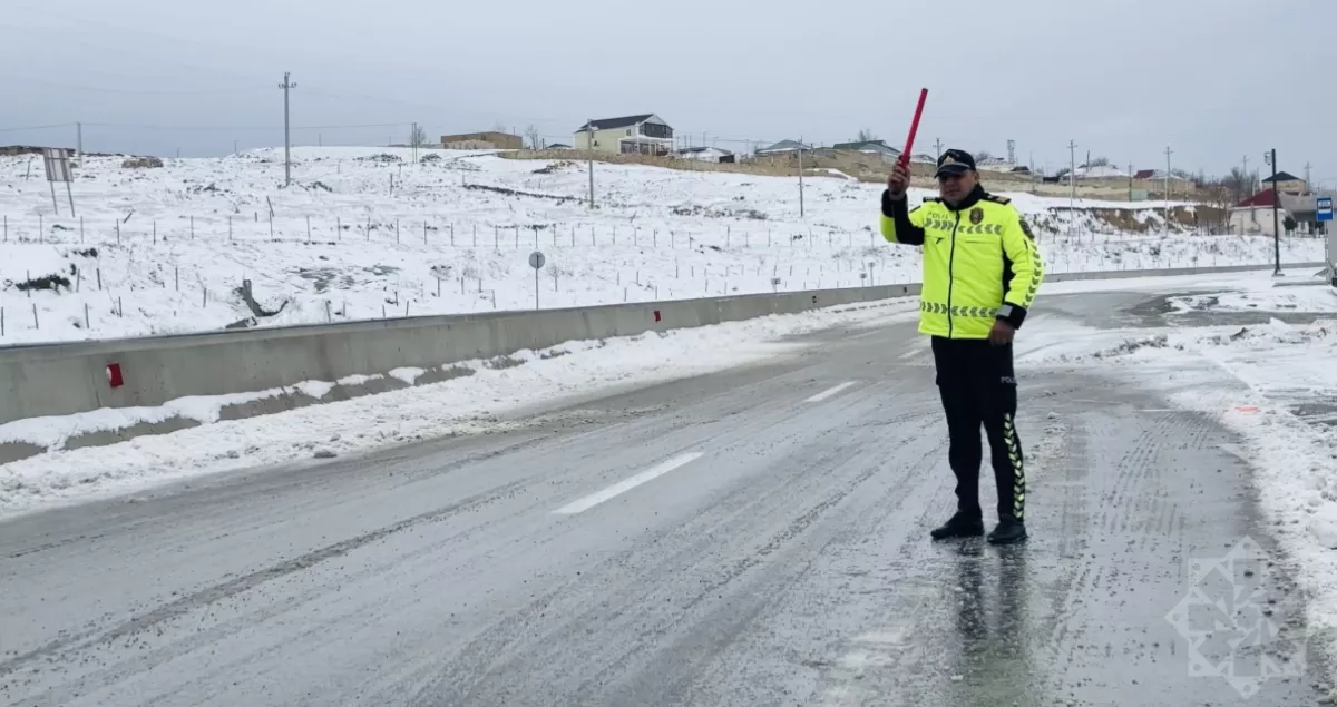 Сохраняющиеся и сегодня снежные и морозные погодные условия привели к обледенению на некоторых участках автомобильной дороги Баку-Шамахы-Евлах, проходящих через территории Гобустана и Агсу. Хотя с утренних часов снегопад прекратился, сильный ветер и метель осложнили обстановку на дорогах.