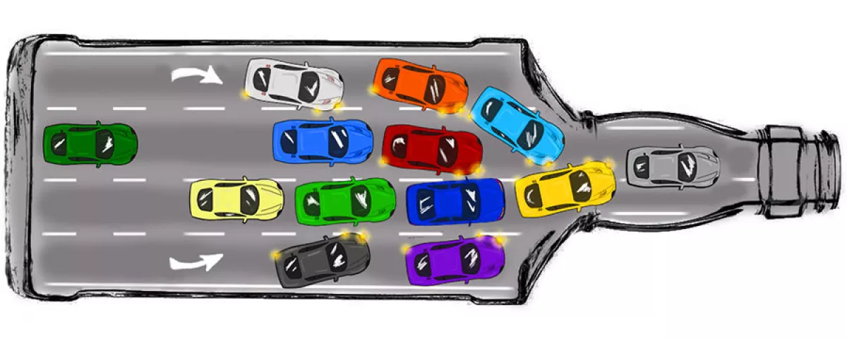 Так, при движении автомобилей по улице Бакиханова на перекрёстке с улицей Самеда Вургуна (в сторону улицы Рашида Бейбутова) трёхполосная дорога превращалась в двухполосную, что заставляло водителей перестраиваться, снижало пропускную способность дороги и приводило к пробкам.