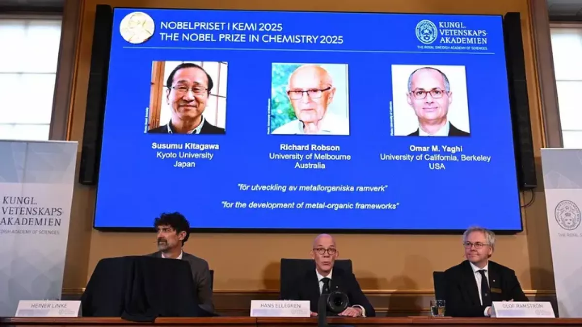 Как отметили в комитете, Сусуму Китагава (Япония), Ричард Робсон (Австралия) и Омар Яги (США) удостоены Нобелевской премии по химии в 2025 году. Они создали молекулярные конструкции с большими пространствами, через которые могут проходить газы и другие химические вещества.