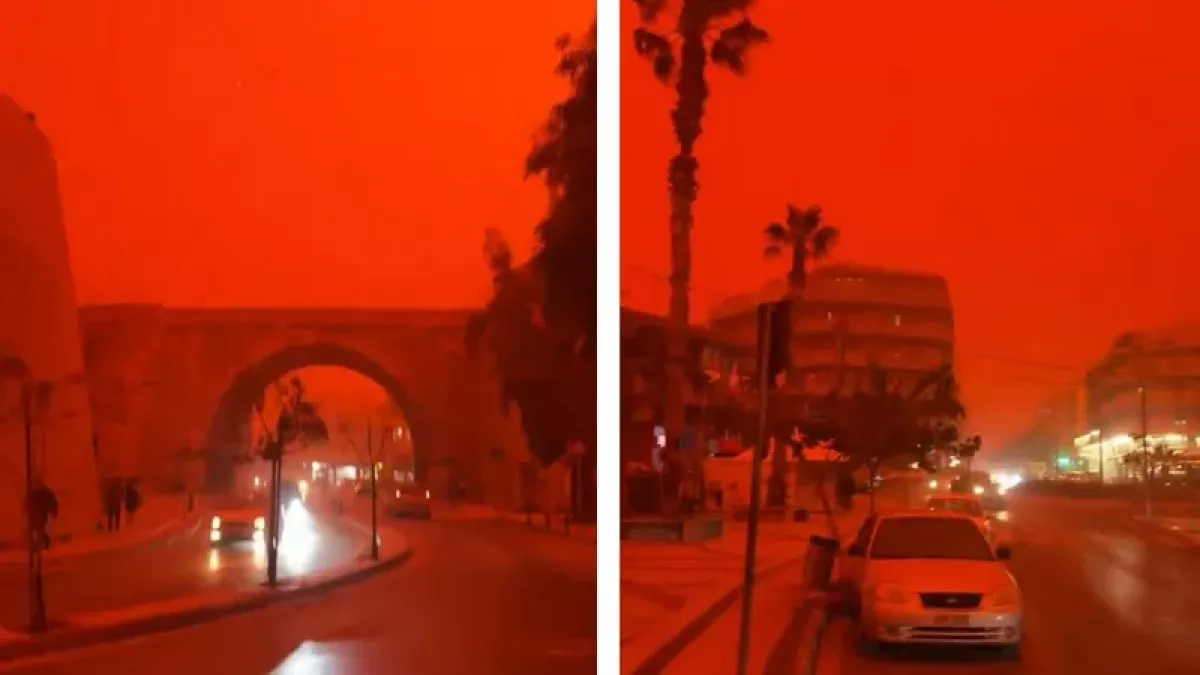 Греческий остров Крит окутан пыльной бурей из Сахары и поражен торнадо, рейсы на пасхальные каникулы перенаправлены, а небо окрашивается в жуткие красные и оранжевые тона.
