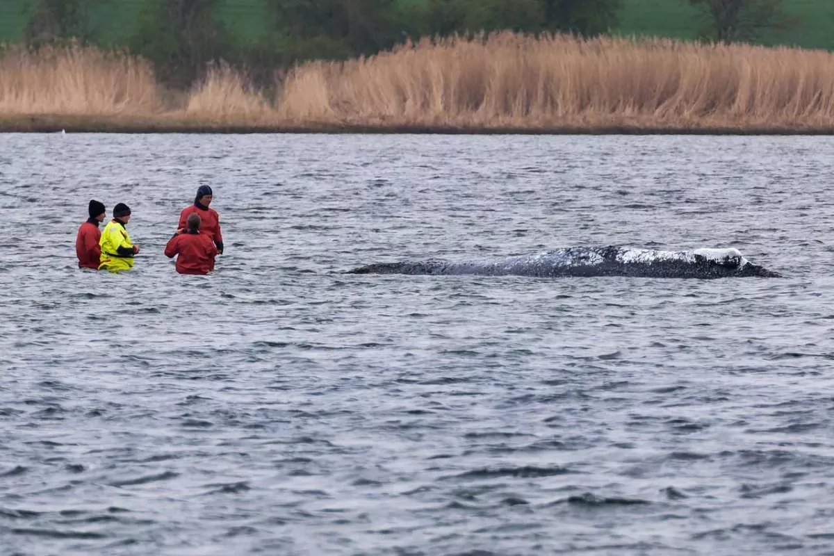 Кит застрял в районе Кирхзее на границе Висмарской бухты, где глубина составляет менее 1,2 метра. Ранее он уже временно освобождался во время прилива, однако затем снова оказывался на мели. Попытки направить его в открытое море с помощью лодок пока не дали результата.
