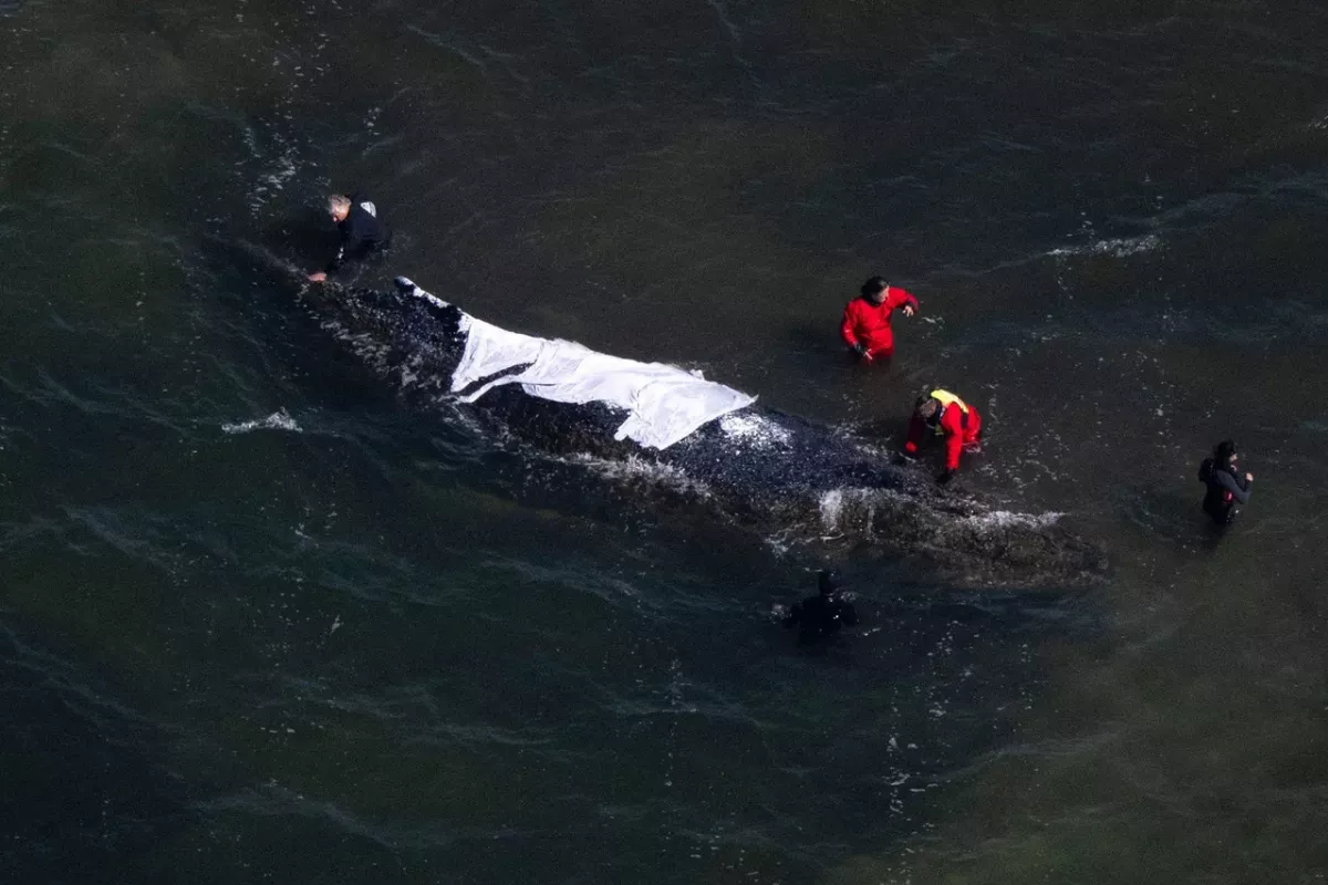 Освобождение кита ожидается в воскресенье или понедельник, в зависимости от погодных условий и уровня воды.
