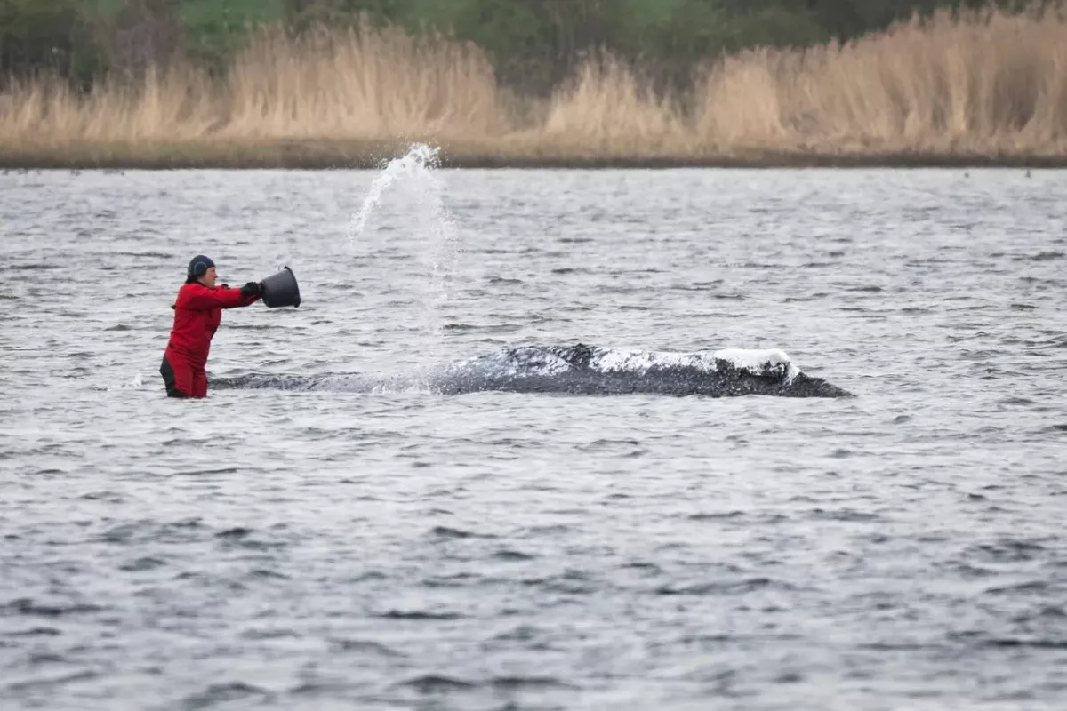 Министр сельского хозяйства региона Тиль Бакхаус (СДПГ) уже несколько недель находится на месте и заявил, что будет сопровождать ситуацию до её завершения. В пятницу он вошёл в воду в защитной одежде и провёл рядом с животным около получаса, находясь по пояс в воде.