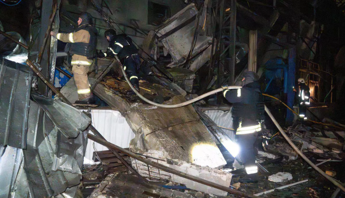 В результате атаки возник пожар на промышленном объекте. Повреждены складские и производственные здания, грузовые автомобили. Погибших и пострадавших нет.