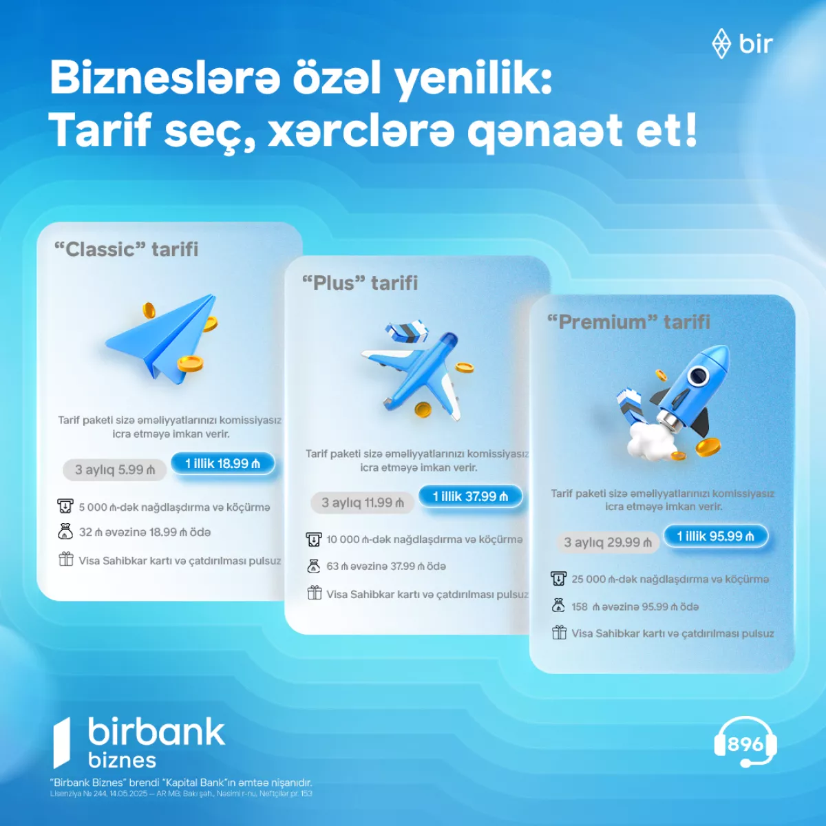 Birbank Biznes, один из лидеров рынка бизнес и банковских услуг для предпринимателей, продолжает предоставлять новые возможности для микро-предпринимателей. Новые тарифы разработанные с учетом индивидуальных потребностей клиентов, предлагаются в трёх вариантах.