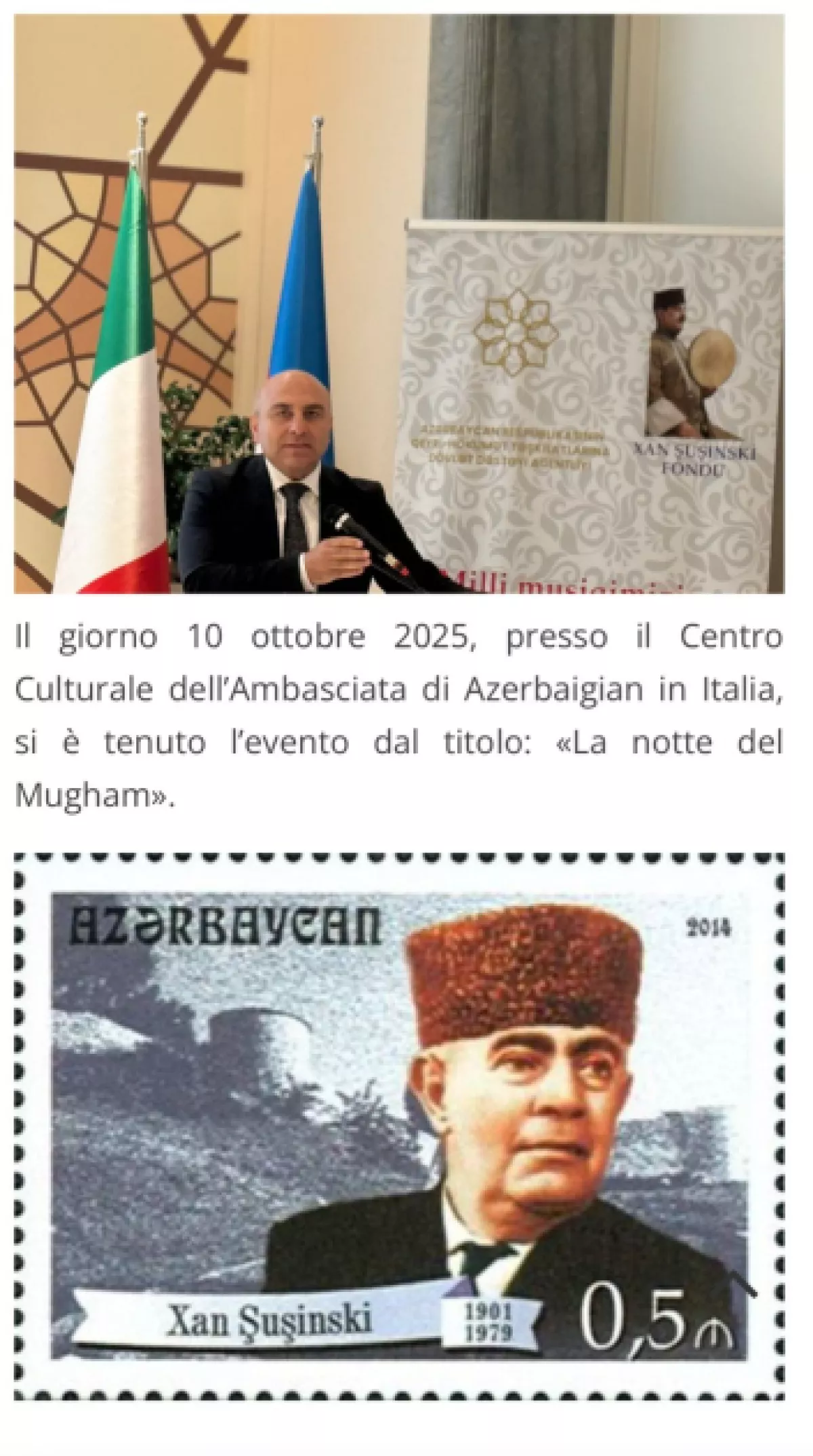 Отмечается, что мероприятие прошло при поддержке Центра культуры при посольстве Азербайджана в Италии совместно с Фондом Хана Шушинского. В материале также говорится о творчестве известного азербайджанского ханенде и композитора Хана Шушинского (1901–1979). Автор подчеркивает, что одна из его самых известных песен – «Горы Шуши» (Şuşanın dağları) посвящена родному ханенде городу Шуша.