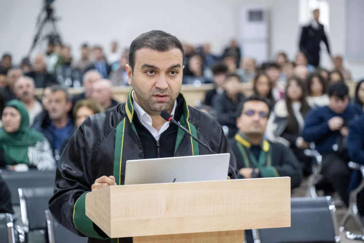 Старший помощник генерального прокурора Вюсал Алиев в своем выступлении сначала затронул часть, касающуюся оспариванию роли обвиняемых в преступном сообществе.
