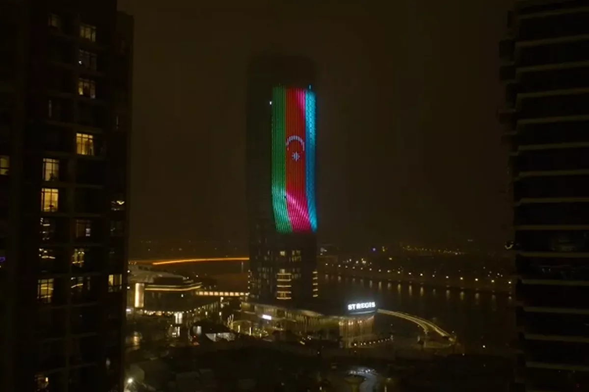 Одно из зданий в Белграде подсвечено цветами флагов Азербайджана и Сербии видео