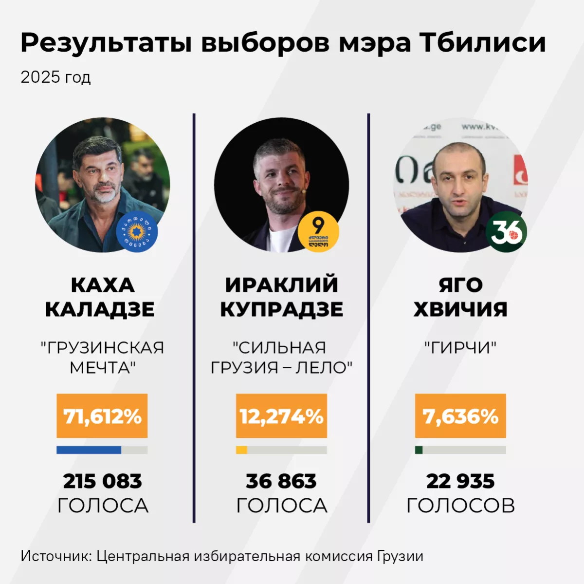 4 октября в Грузии состоялись выборы органов местного самоуправления. Никаких сюрпризов не произошло: кандидат от правящей партии «Грузинская мечта» и действующий мэр Тбилиси Каха Каладзе был переизбран на третий срок с большим отрывом.