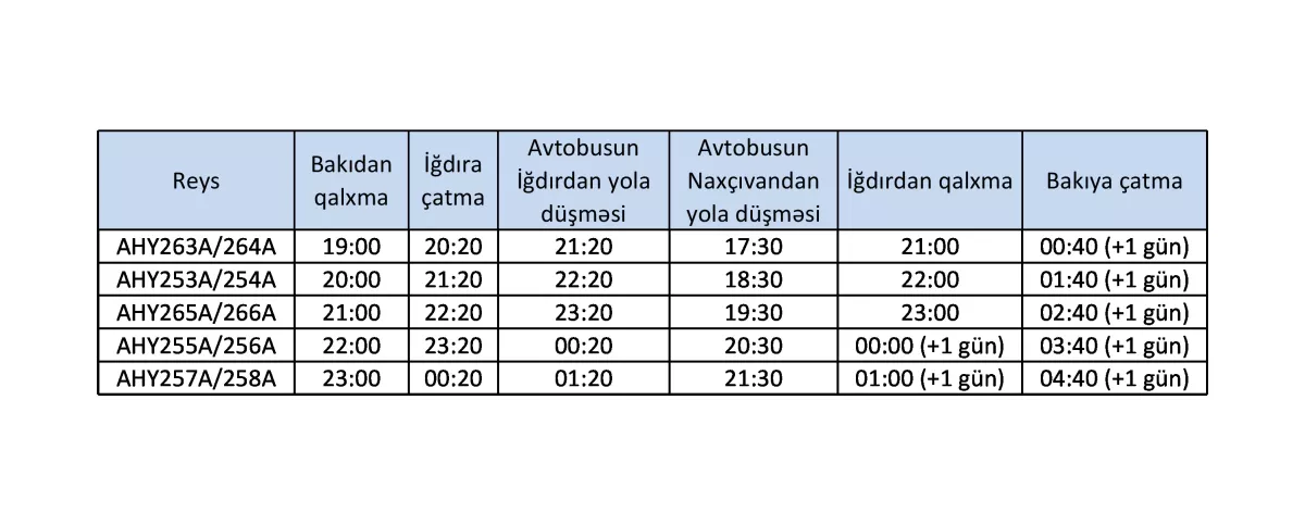 Для перевозки пассажиров из аэропорта Игдыр в Нахчыван и обратно организованы специальные автобусы. Автобусные рейсы будут осуществляться через автовокзал Нахчывана.