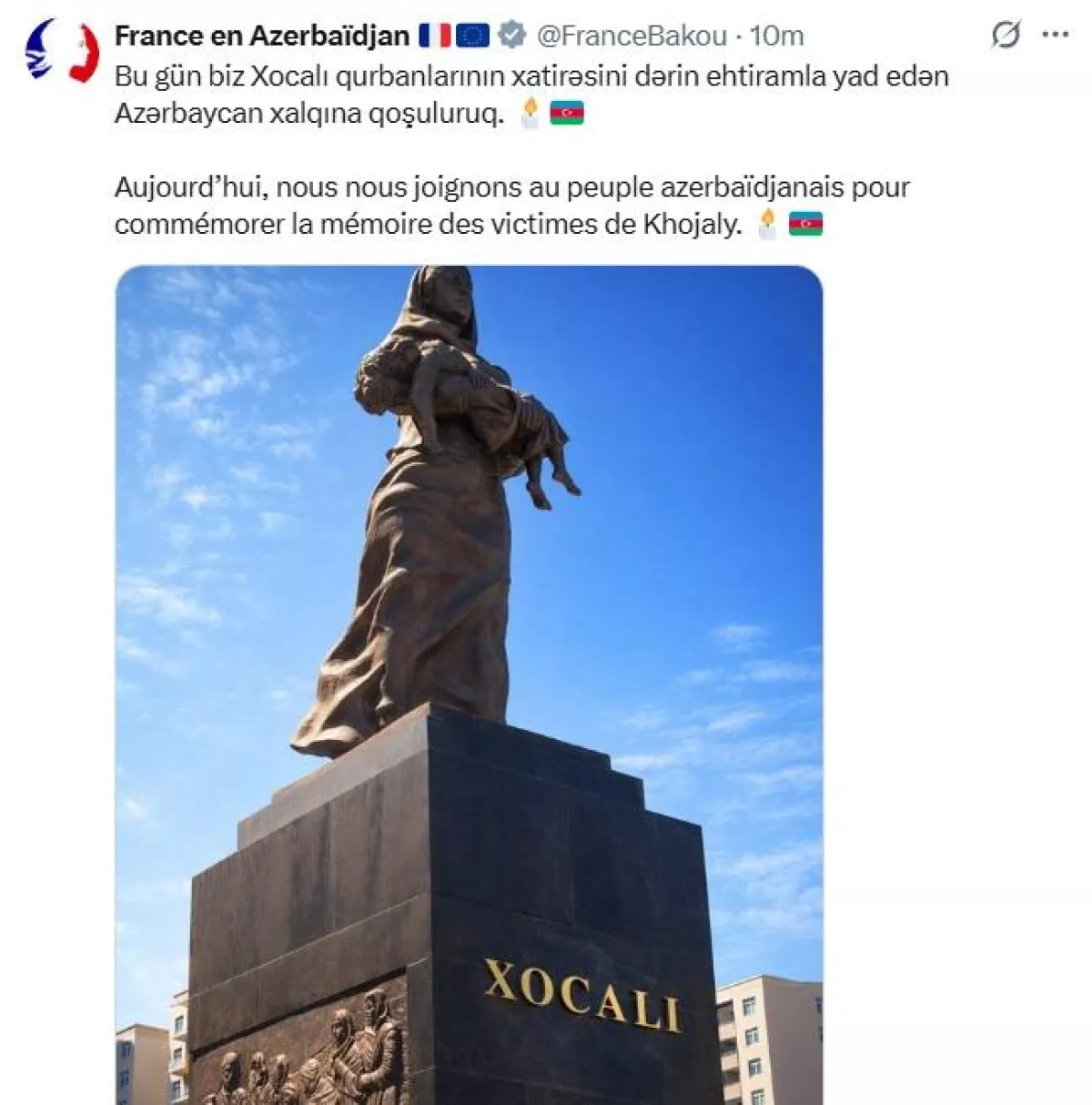 Пусть продолжают наши недруги изводить себя. Тем временем посольства Хорватии, Франции и Словакии в Баку поделились публикациями по случаю 34-й годовщины Ходжалинской трагедии. Французское посольство на своей официальной странице в социальной сети X — на французском и азербайджанском языках — выразило солидарность с народом Азербайджана, который с глубоким уважением чтит память жертв Ходжалинской трагедии. И это — посольство Франции, в свое время принимавшее окопавшихся на суверенных азербайджанских землях сепаратистов в качестве «почетных гостей». Такой геополитический кульбит, ставший результатом системной работы, на что накануне обратил внимание Президент Азербайджана Ильхам Алиев, в том числе деятельности Фонда Гейдара Алиева, который сразу после создания запустил международную кампанию «Справедливость к Ходжалы!». Уже около двадцати стран официально признали Ходжалинский геноцид, и этот процесс продолжается.