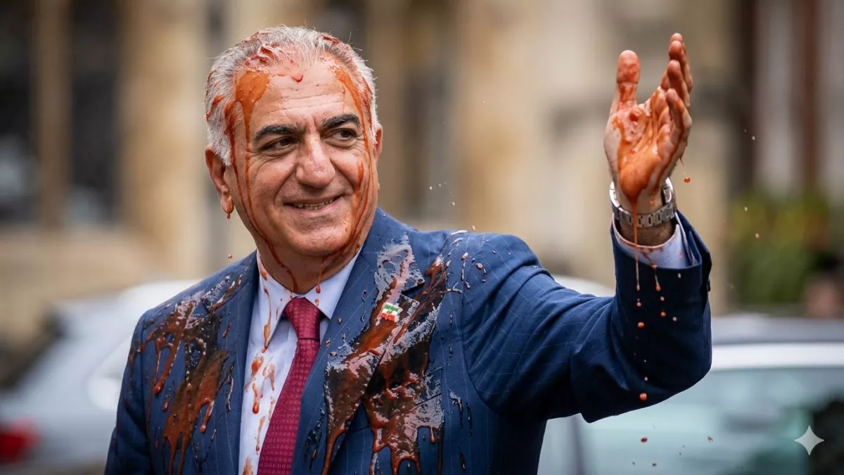 Находящийся в изгнании наследный принц Ирана Реза Пехлеви в четверг был облит красной жидкостью, когда выходил из здания после пресс-конференции в Берлине.