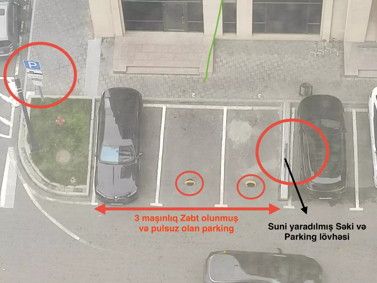 Перед кинотеатром Court Cinema на улице Мехди Мехдизаде в Хатаинском районе Баку на дороге у тротуара создана частная бесплатная парковка на три места.