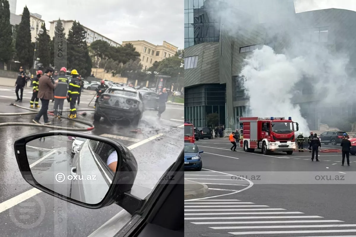 Перед зданием Милли Меджлиса в Баку сгорел автомобиль ФОТО