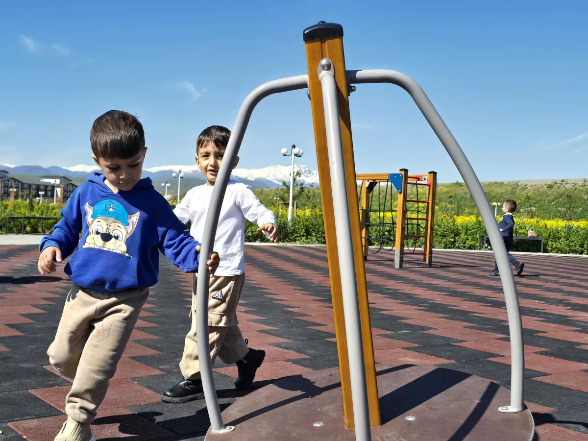 Как сообщает Caliber.Az, играя на своей игровой площадке с видом на заснеженные горы Карабаха, эти счастливые дети являют собой зримое воплощение «Великого возрождения».