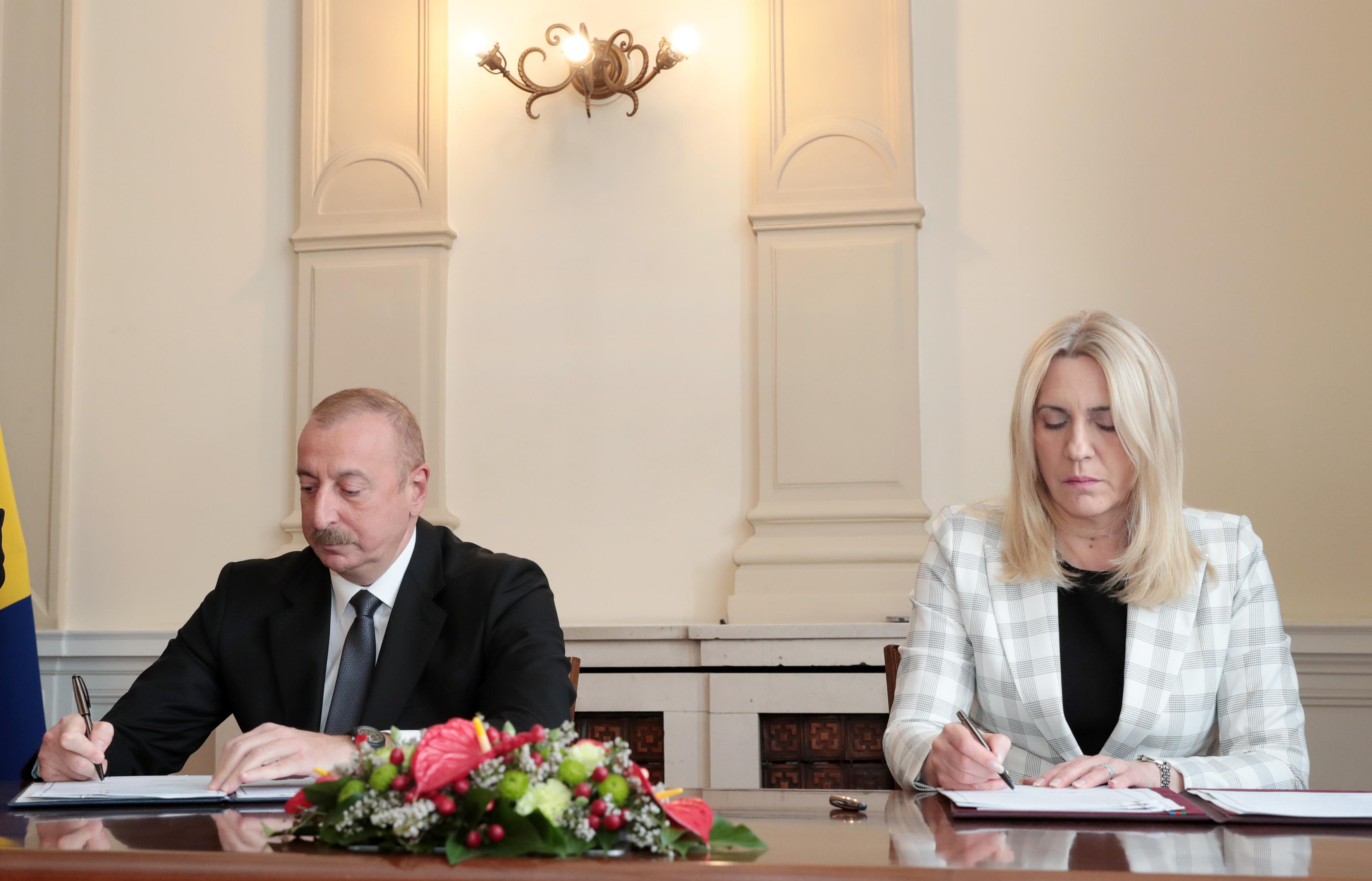 Как сообщает Азертадж, документ подписали президент Азербайджана Ильхам Алиев и председатель президиума Боснии и Герцеговины Желька Цвиянович.