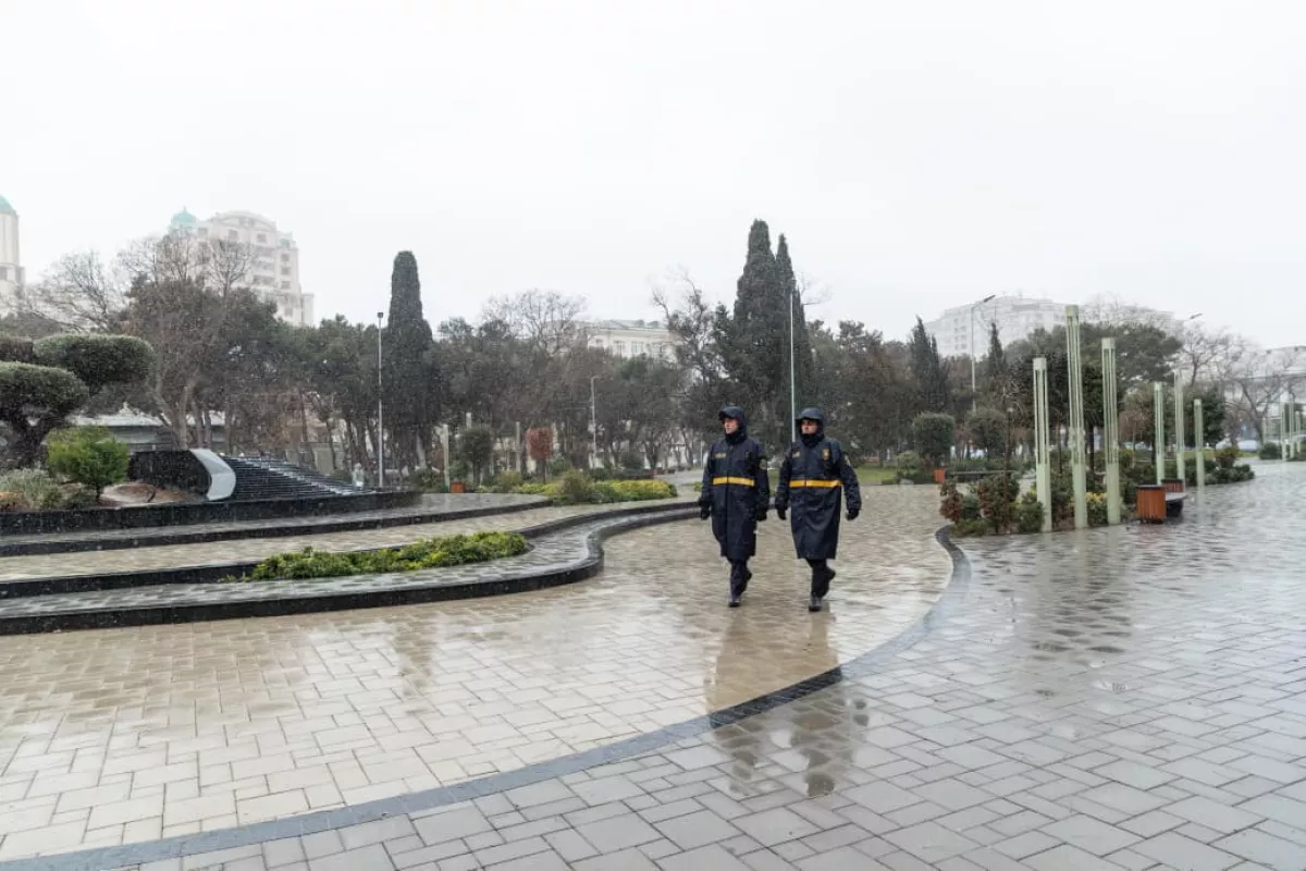 В снежную и дождливую погоду, наблюдаемую в Азербайджане, сотрудники полиции начали работать в усиленном режиме.