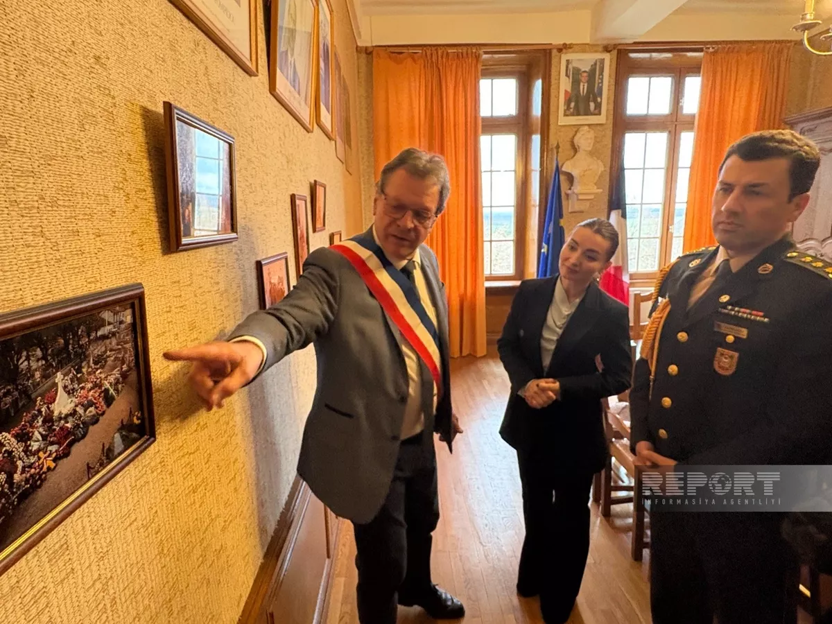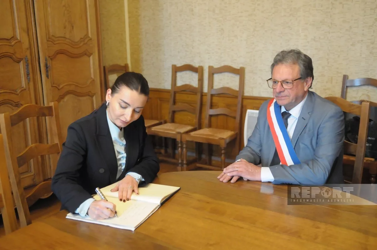 Мэр пригласил Лейлу Абдуллаеву в комнату, где некогда голосовал Шарль де Голль, и она оставила запись в книге памяти. В память о визите де Голля в Баку дипломат вручила мэру подарок с гербом Азербайджана и фотографией генерала.