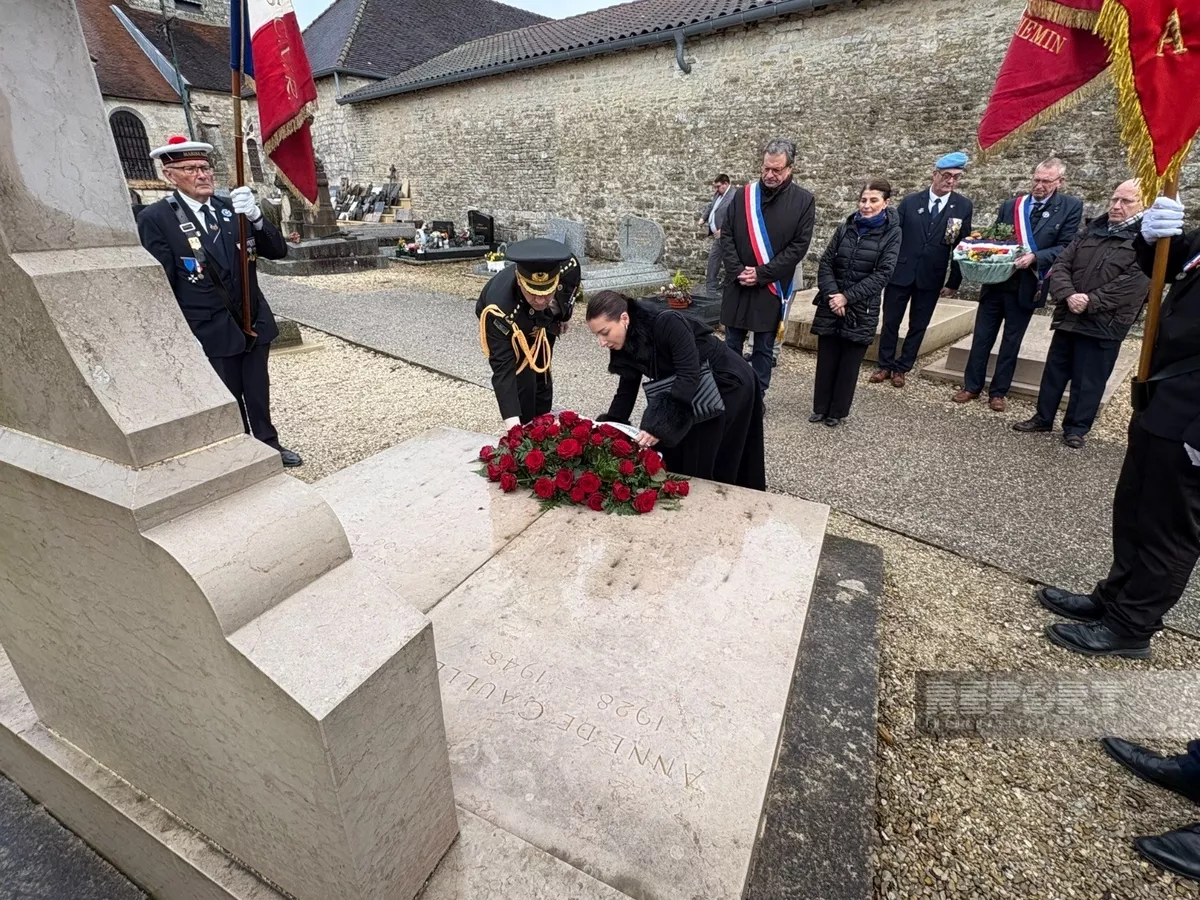 Делегации также вместе почтили память де Голля на его могиле, где посол Лейла Абдуллаева и военный атташе, полковник Джавид Абдуллаев, возложили венок.