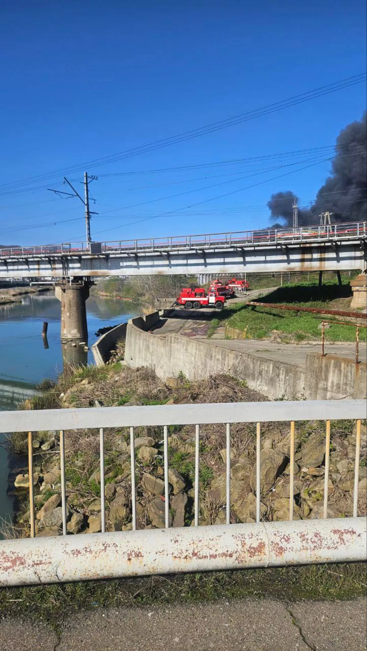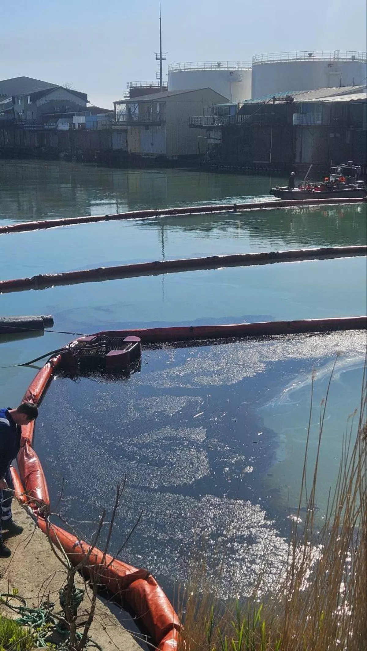 Местные жители публикуют кадры, на которых виден дым, но и видео с «пленкой» на поверхности моря у берега, предположительно, нефтяной.