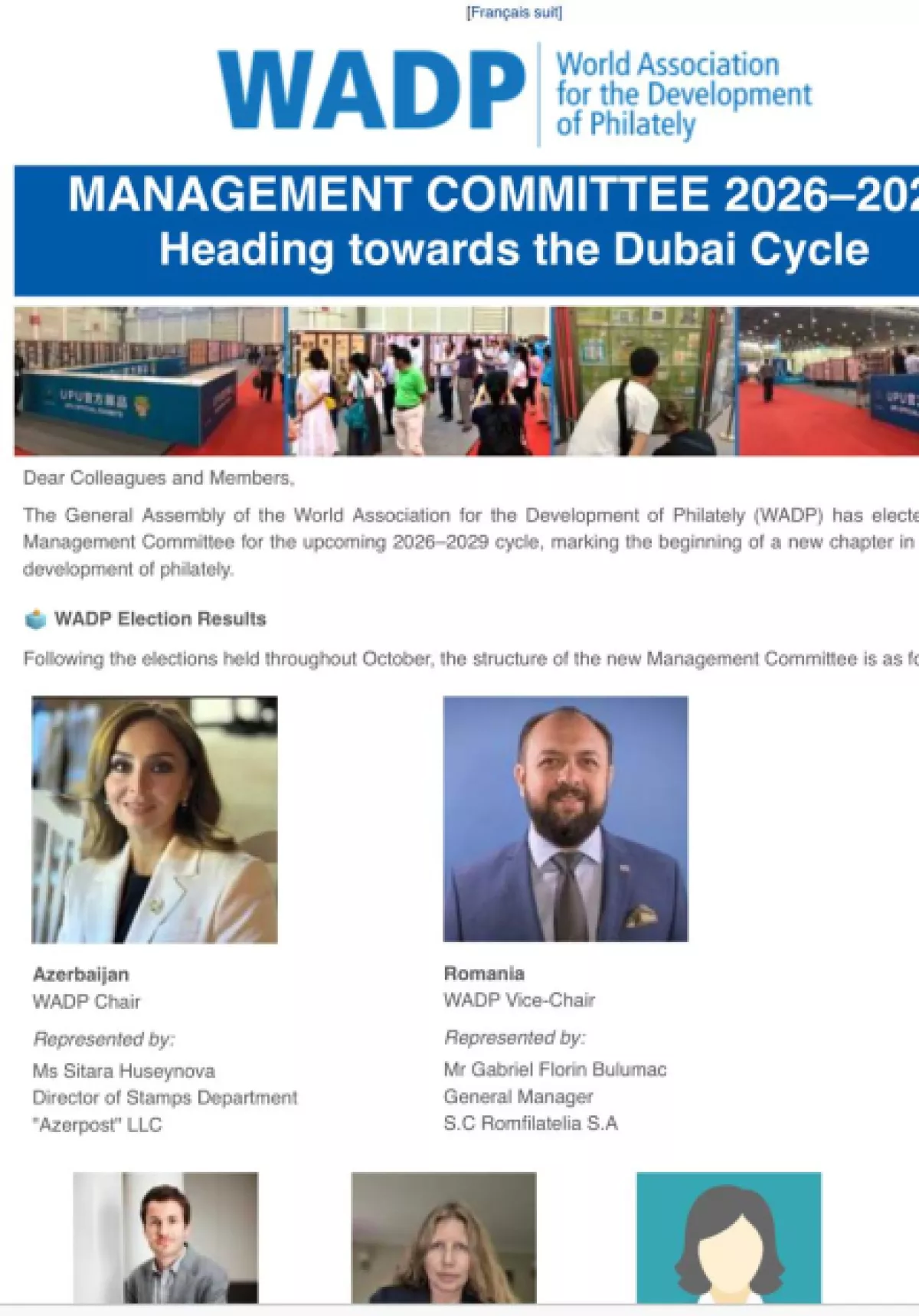 Объявлены результаты выборов Президента Всемирной ассоциации развития филателии (World Association for the Development of Philately – WADP), действующей в рамках Всемирного почтового союза (ВПС), а также членов Руководящего комитета на 2026–2029 годы.