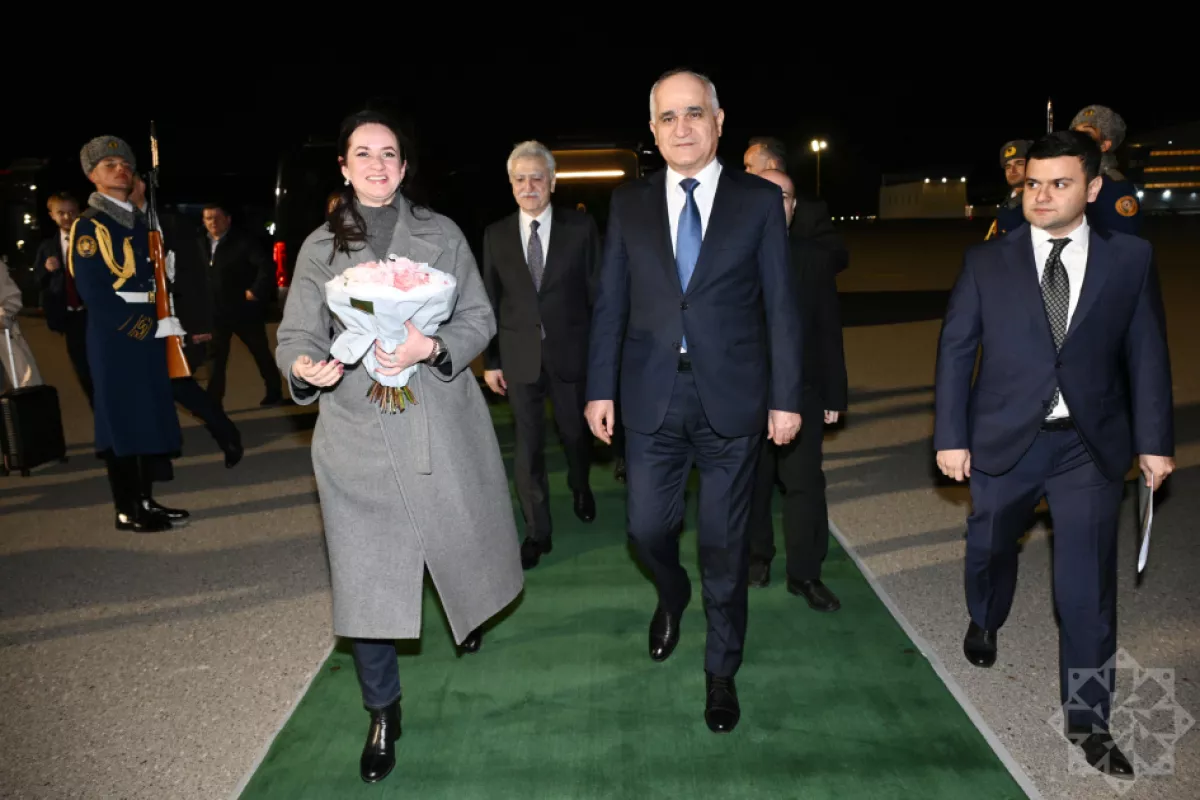 Как сообщает АЗЕРТАДЖ, в Международном аэропорту Гейдар Алиев, где развевались государственные флаги обеих стран, в честь гостьи был выстроен почетный караул.