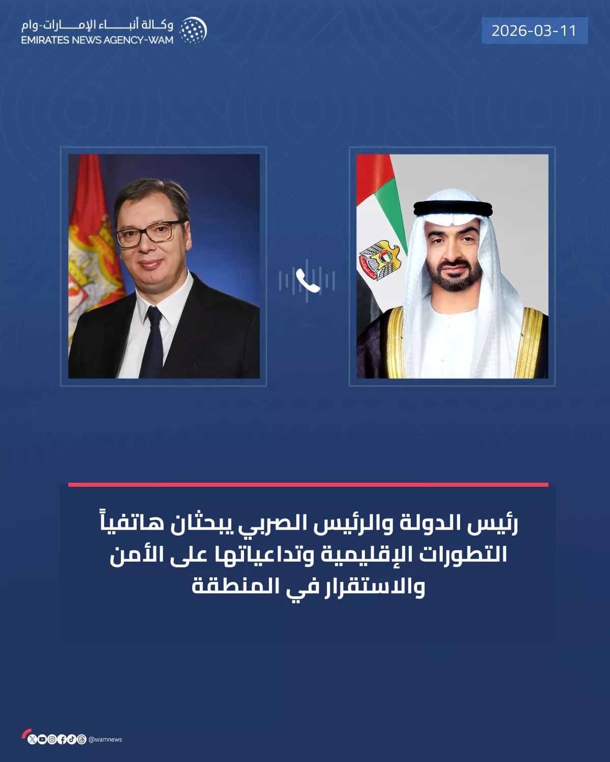 Президент Сербии подтвердил полную солидарность своей страны с ОАЭ в вопросах защиты безопасности и территориальной целостности, в свою очередь шейх Мохаммед поблагодарил Вучича за поддержку.