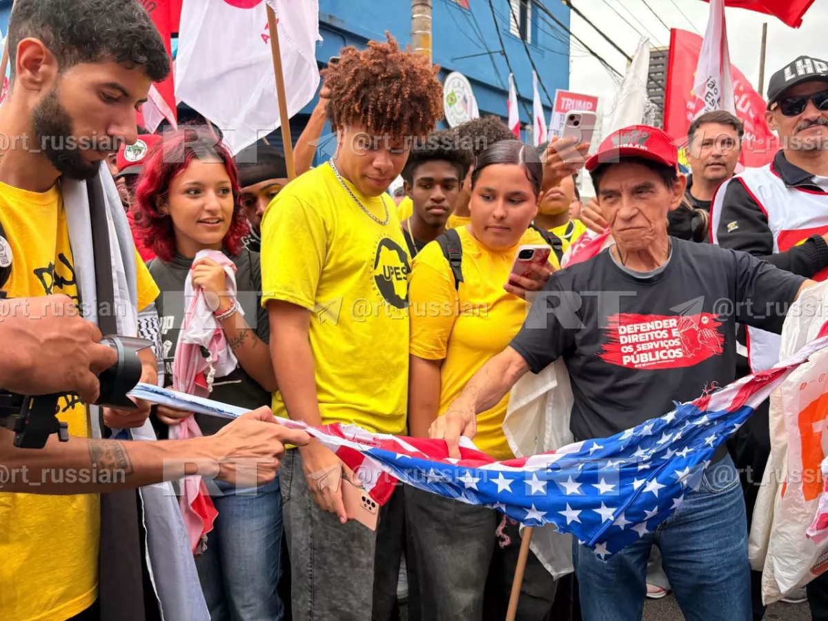 В бразильском Сан-Паулу у здания консульства США прошла акция протеста, в ходе которой участники демонстрации растоптали и сожгли американские флаги.