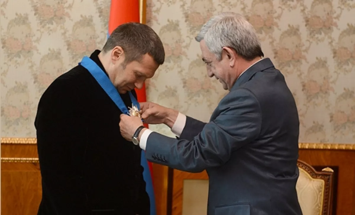Речь идёт об одной из высших наград Республики Армения, которой Соловьёв был удостоен в 2013 году «за значительный вклад в установление и развитие дружбы между народами Армении и России».