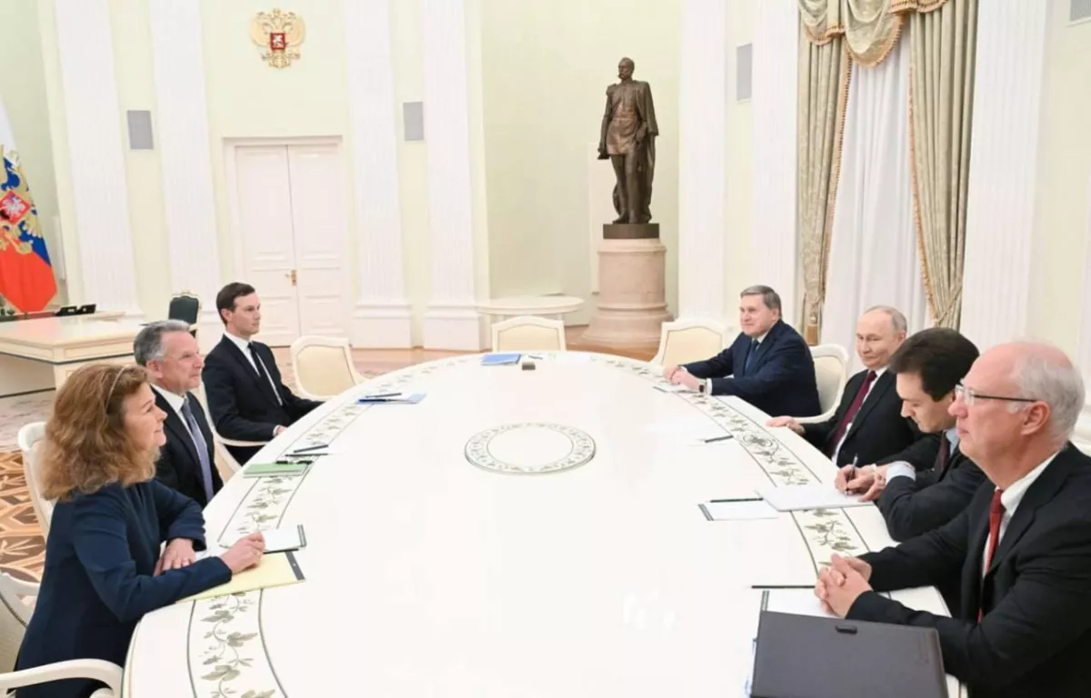 Президент России Владимир Путин начал встречу с прибывшими в Москву американскими переговорщиками: спецпосланником Стивеном Уиткоффом и Джаредом Кушнером - зятем американского лидера Дональда Трампа, пишет ТАСС.