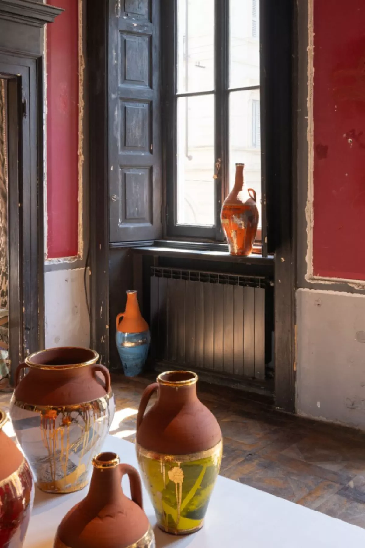 Керамические образцы, входящие в серию «Вне функциональности», представлены как логический итог экспериментальных поисков художницы в таких видах как гончарное дело и стеклодувное декоративно-прикладное искусство. Эти керамические сосуды, опираясь на традиционные ремесленные корни, формируются как повседневные предметы, используемые в быту, и преобразуются художницей в уникальные, изящные дизайнерские объекты. Такой подход к материалам не только органично связывает произведения с физической средой, но и создает на их поверхности неповторимые, изменчивые и непредсказуемые, живые визуальные эффекты. В то же время эта серия, обращающаяся к поэзии материи и памяти, выстраивает тонкий, поэтичный диалог между древними традициями и современным самовыражением художницы. Ссылаясь на свой обширный фотоархив, посвященный азербайджанским пейзажам, Аида Махмудова с помощью техники деколь переносит сделанные ею кадры на керамические поверхности, запечатлевая в произведениях личные воспоминания и искренние истории. В результате ритуальные формы этих сосудов перерождаются в глубокие пристанища, хранящие в себе самые сокровенные воспоминания. Эти простые, но отличающиеся формы воплощают текучесть времени, подобно молчаливым свидетелям символических поворотных точек в личной, сокровенной и рефлексивной карте человеческого сердца.