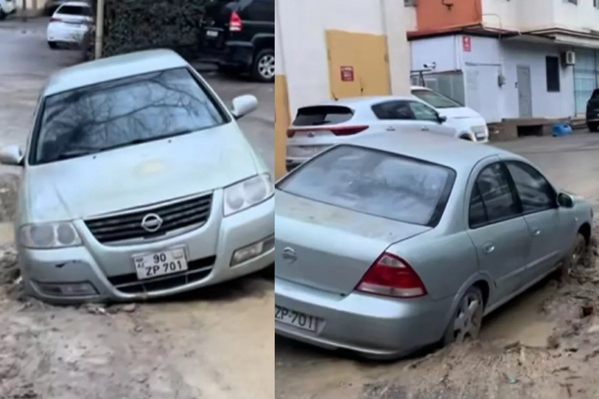 Раскопали и ушли: в Баку машина провалилась в яму, жители обвиняют Госслужбу Видео